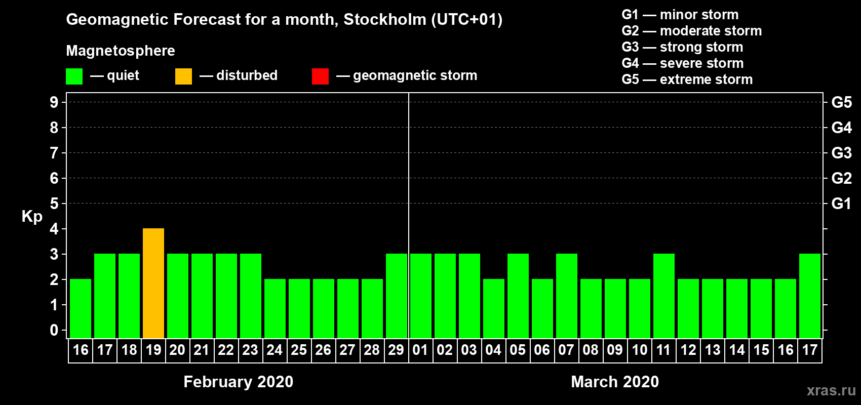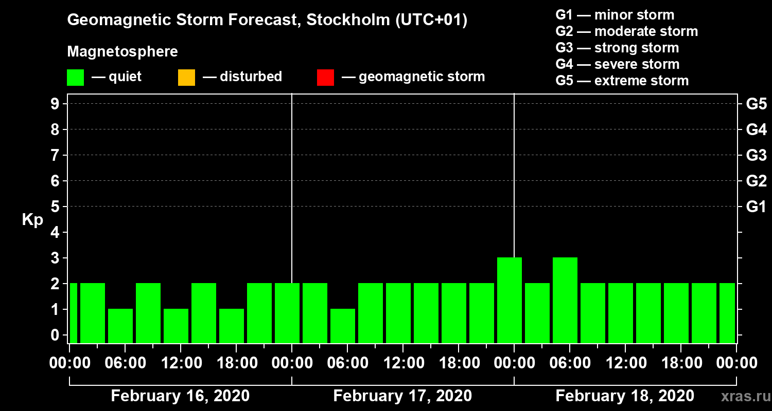 Geomagnetic activity forecast in Stockholm — Feb 16, 2020