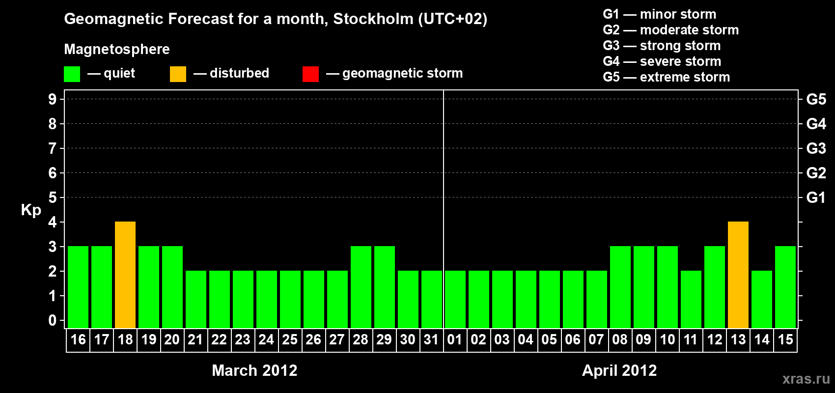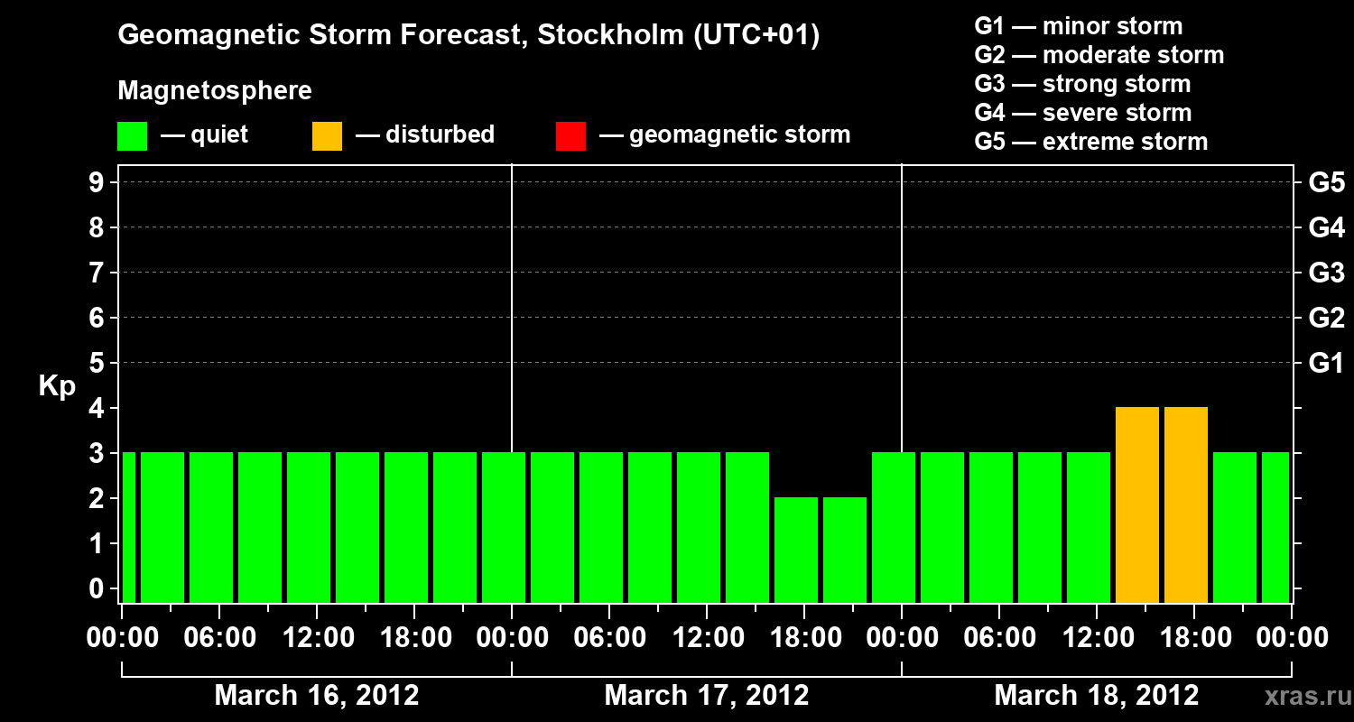 Geomagnetic storm forecast in Stockholm for Mar 16, 2012