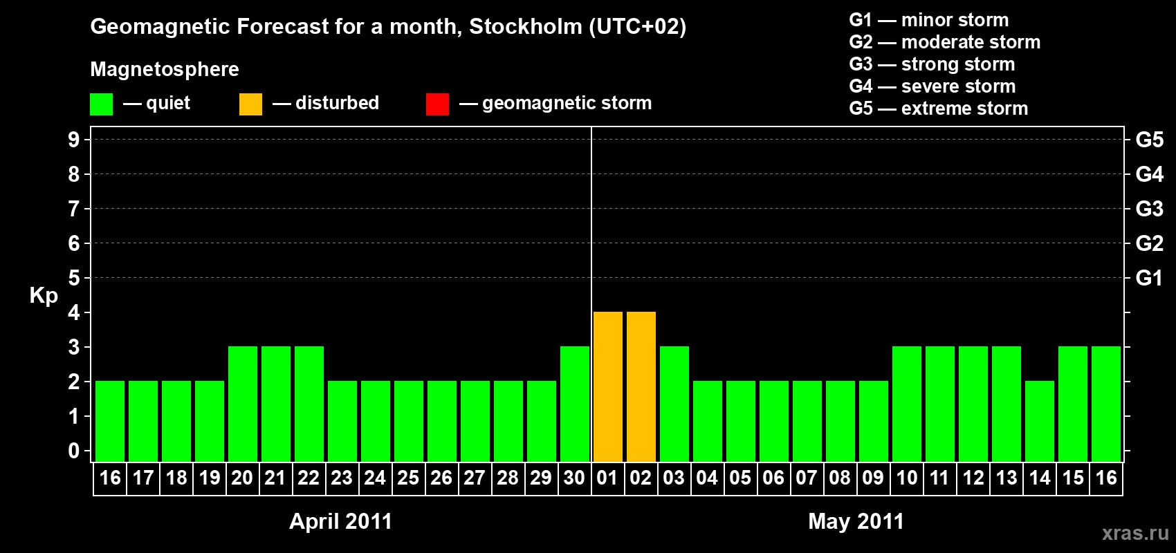 Geomagnetic storm forecast in Stockholm for Apr 16, 2011