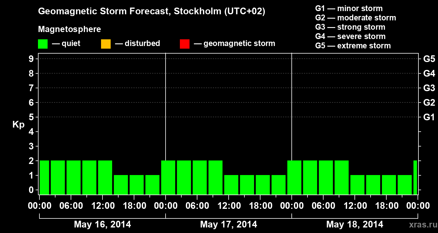 Geomagnetic storm forecast in Stockholm for May 16, 2014