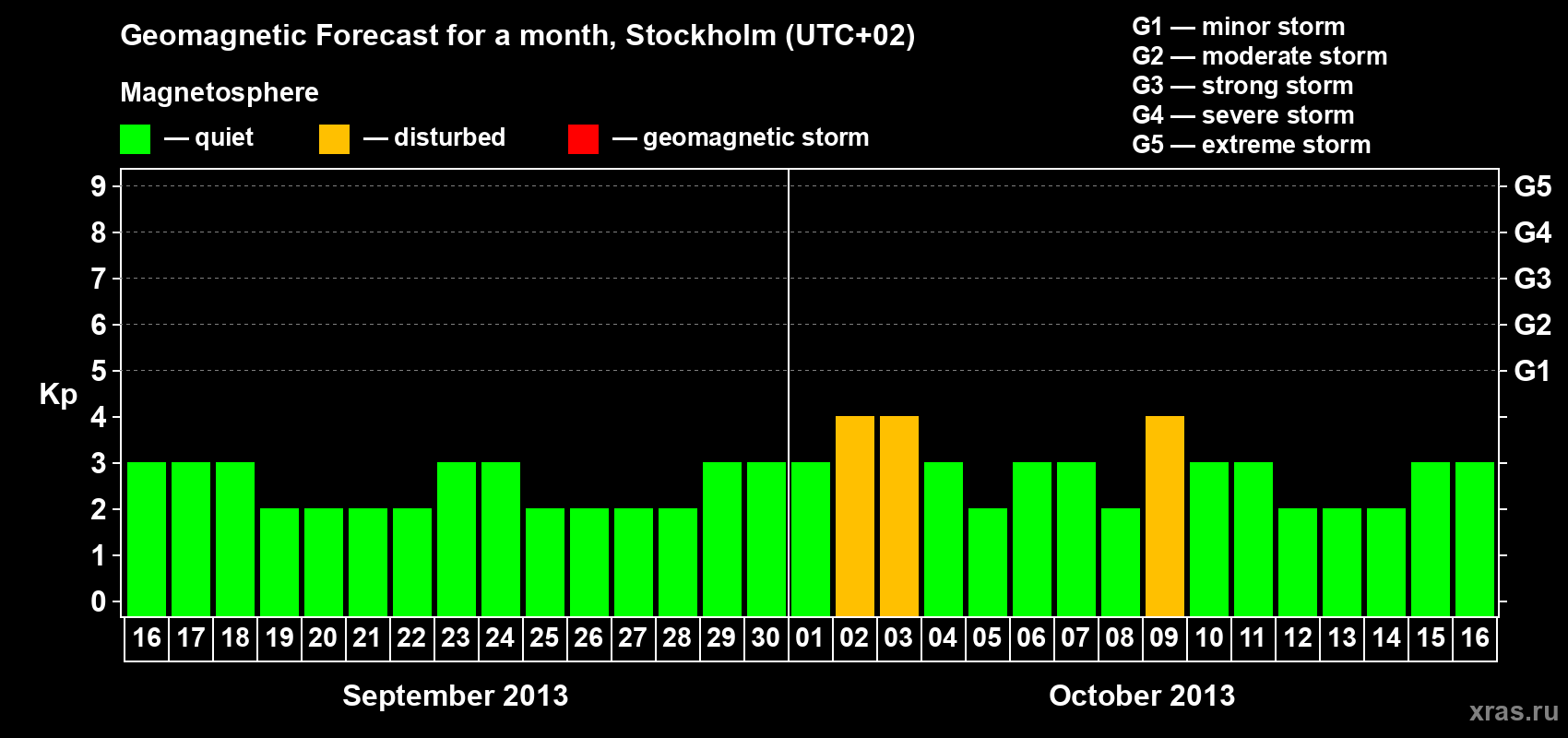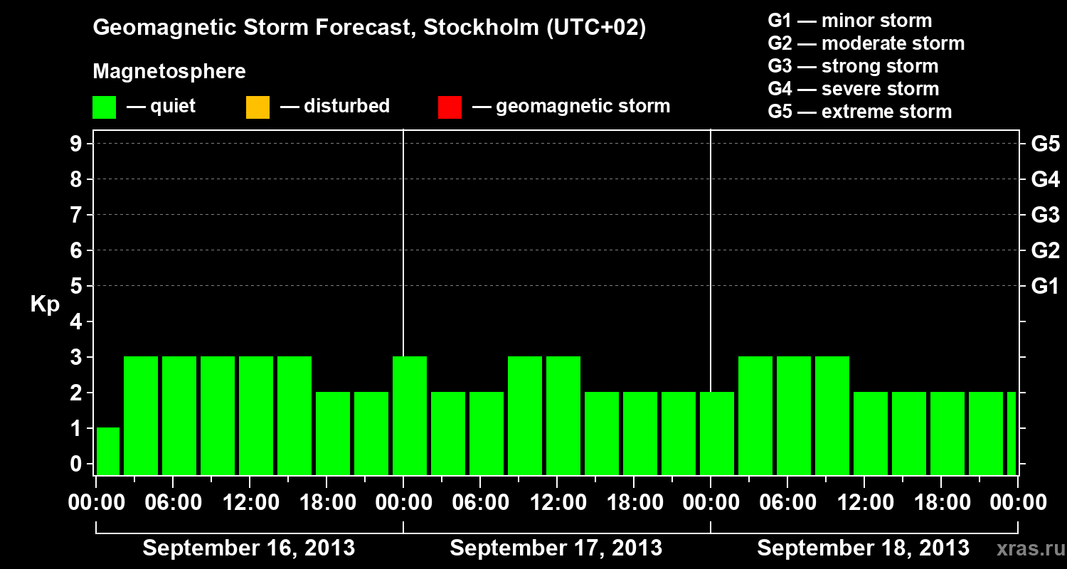 Geomagnetic storm forecast in Stockholm for Sep 16, 2013