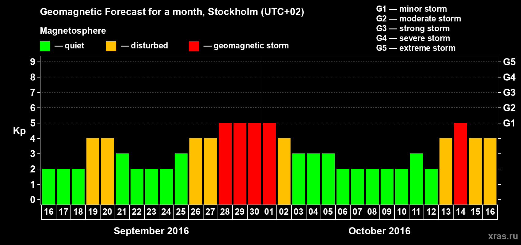 Geomagnetic storm forecast in Stockholm for Sep 16, 2016