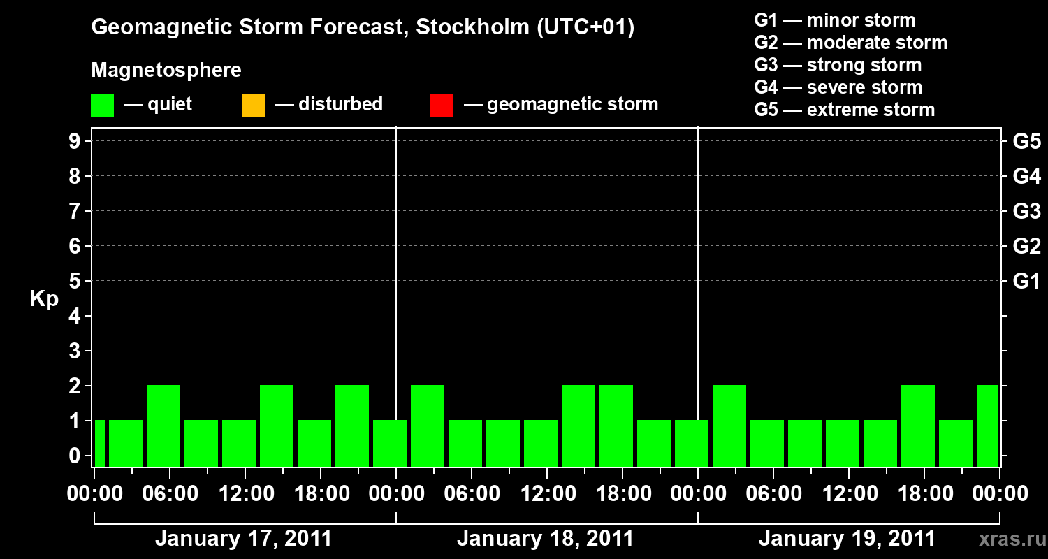 Geomagnetic storm forecast in Stockholm for Jan 17, 2011