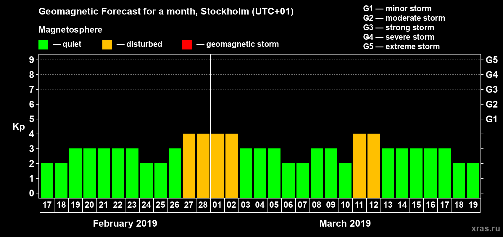 Geomagnetic storm forecast in Stockholm for Feb 17, 2019