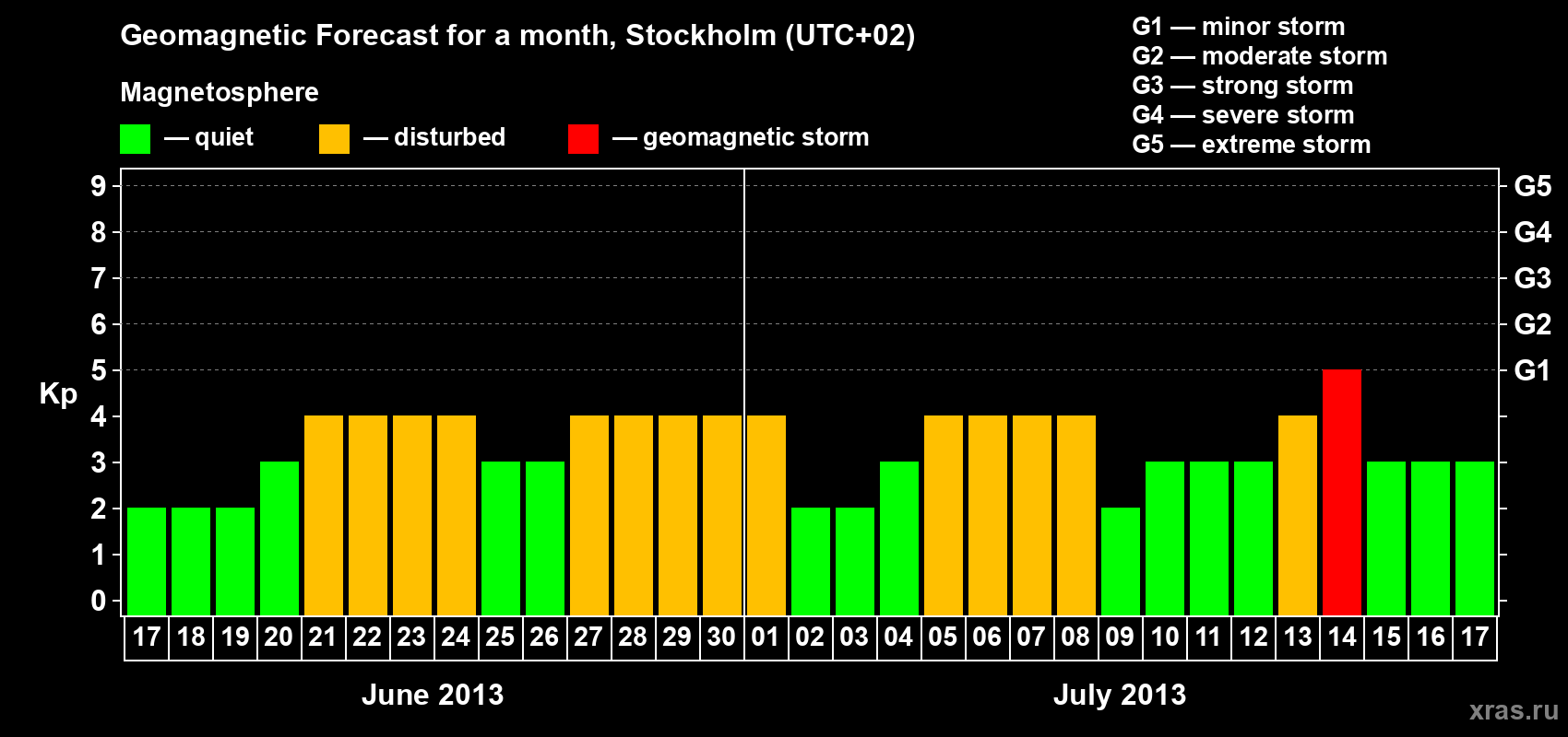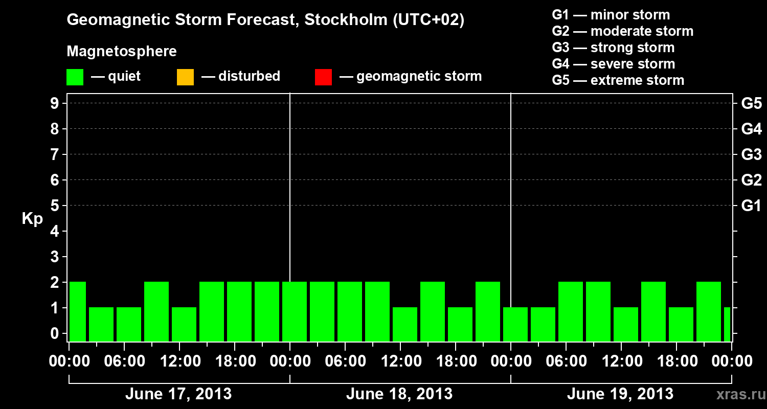 Geomagnetic storm forecast in Stockholm for Jun 17, 2013