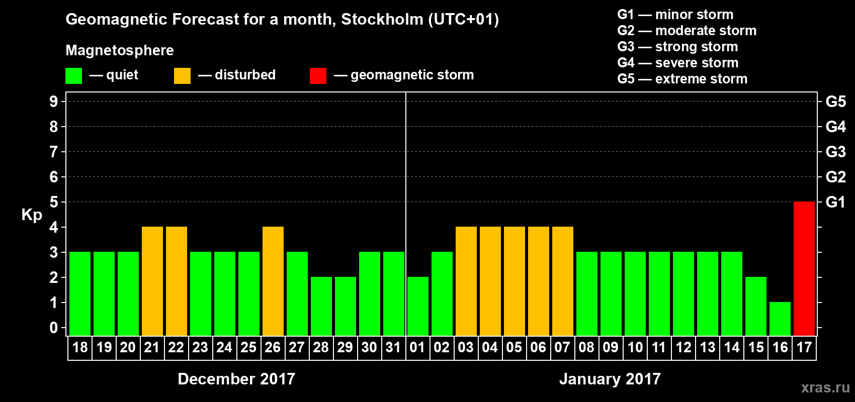 Geomagnetic storm forecast in Stockholm for Dec 18, 2016