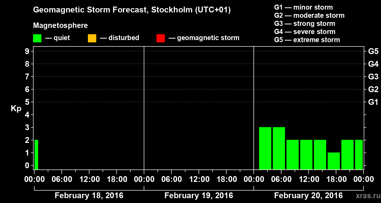Geomagnetic storm forecast in Stockholm for Feb 18, 2016