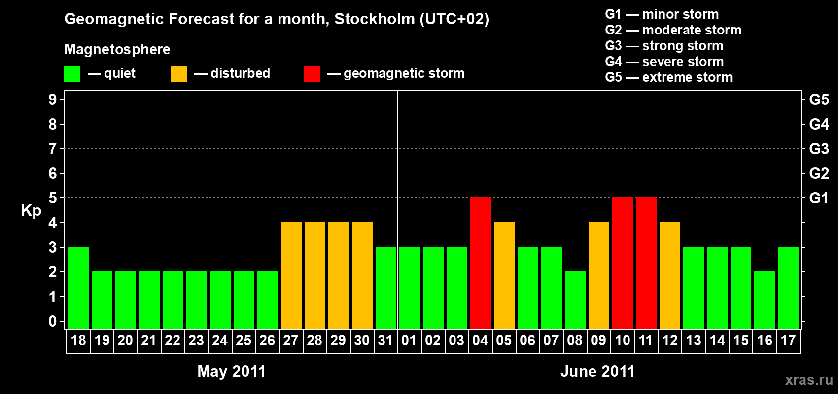 Geomagnetic storm forecast in Stockholm for May 18, 2011