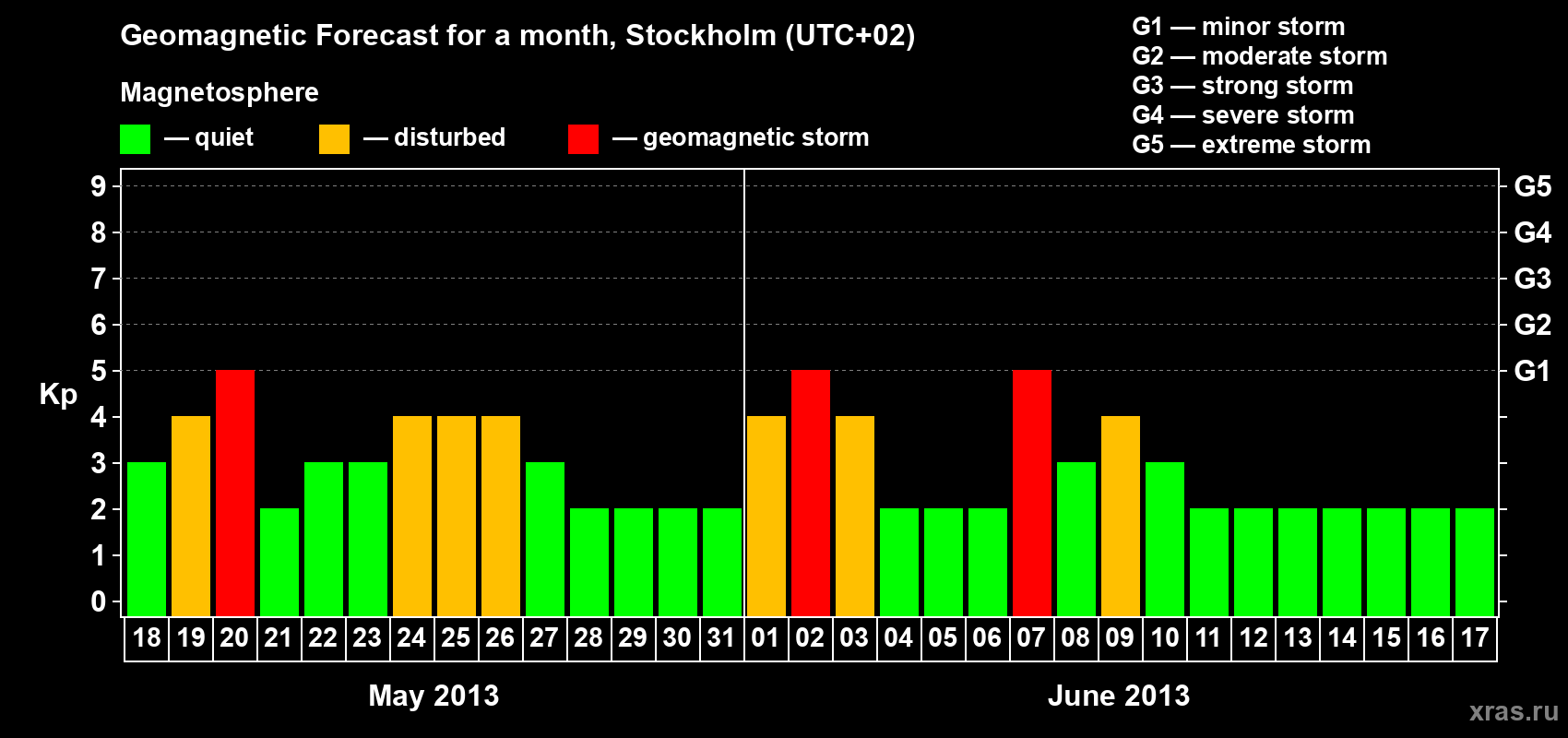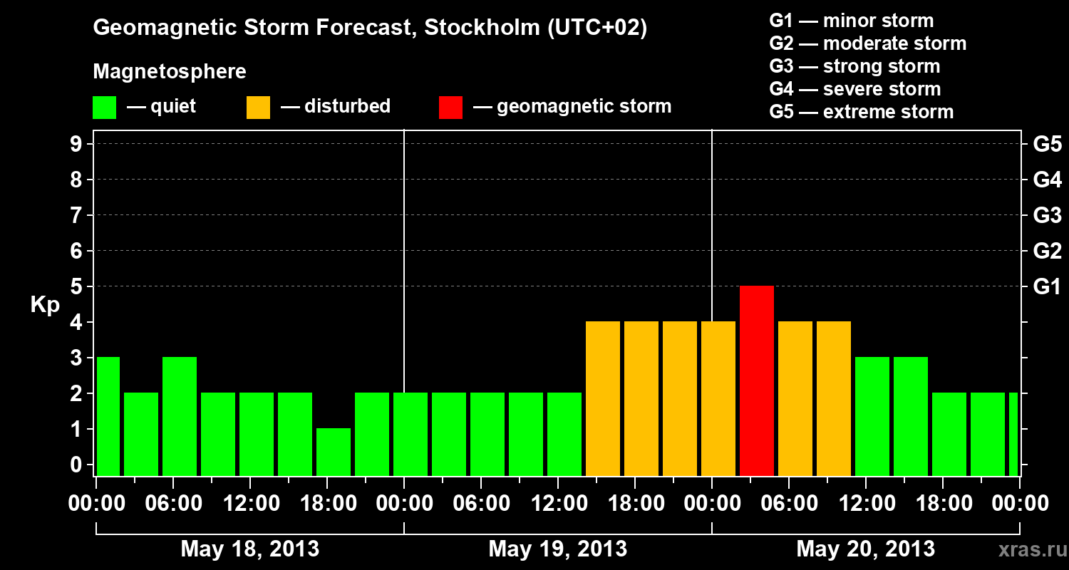 Geomagnetic storm forecast in Stockholm for May 18, 2013