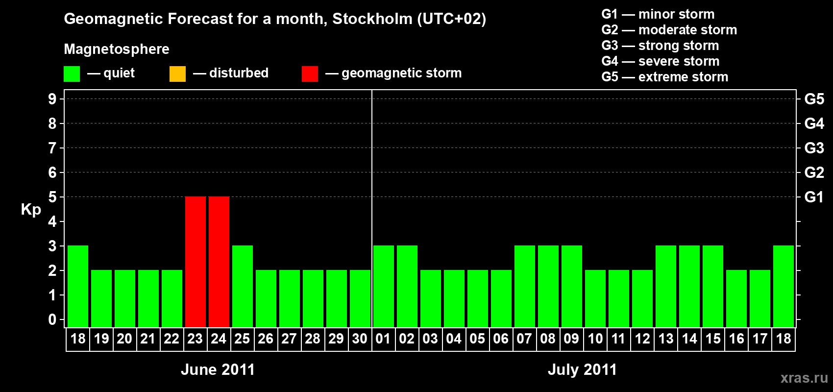 Geomagnetic storm forecast in Stockholm for Jun 18, 2011