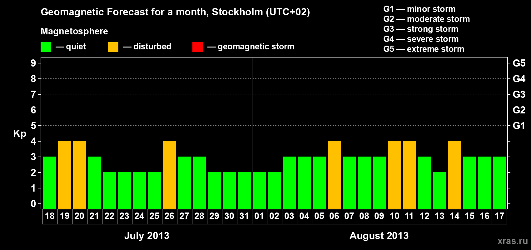 Geomagnetic storm forecast in Stockholm for Jul 18, 2013
