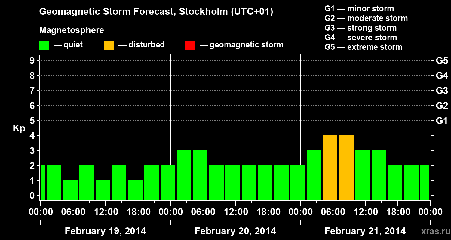 Geomagnetic storm forecast in Stockholm for Feb 19, 2014