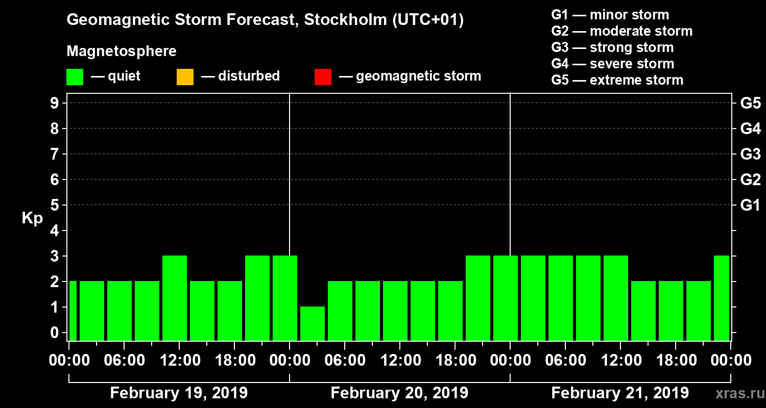 Geomagnetic activity forecast in Stockholm — Feb 19, 2019