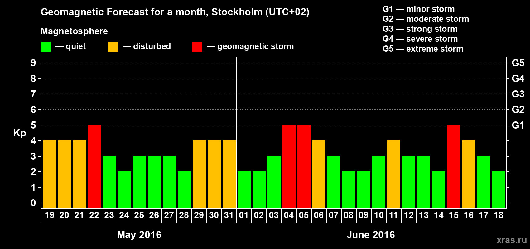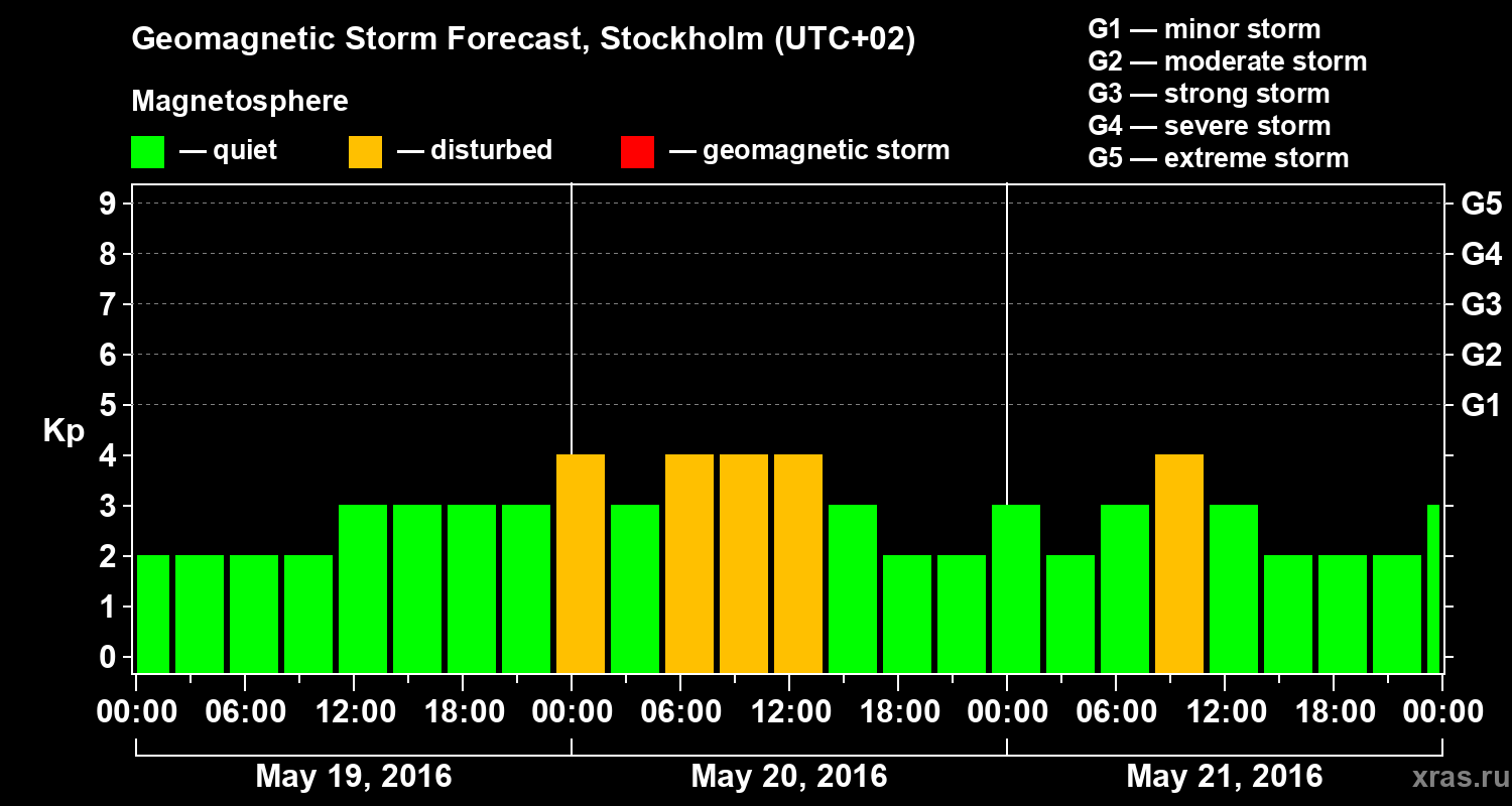 Geomagnetic storm forecast in Stockholm for May 19, 2016