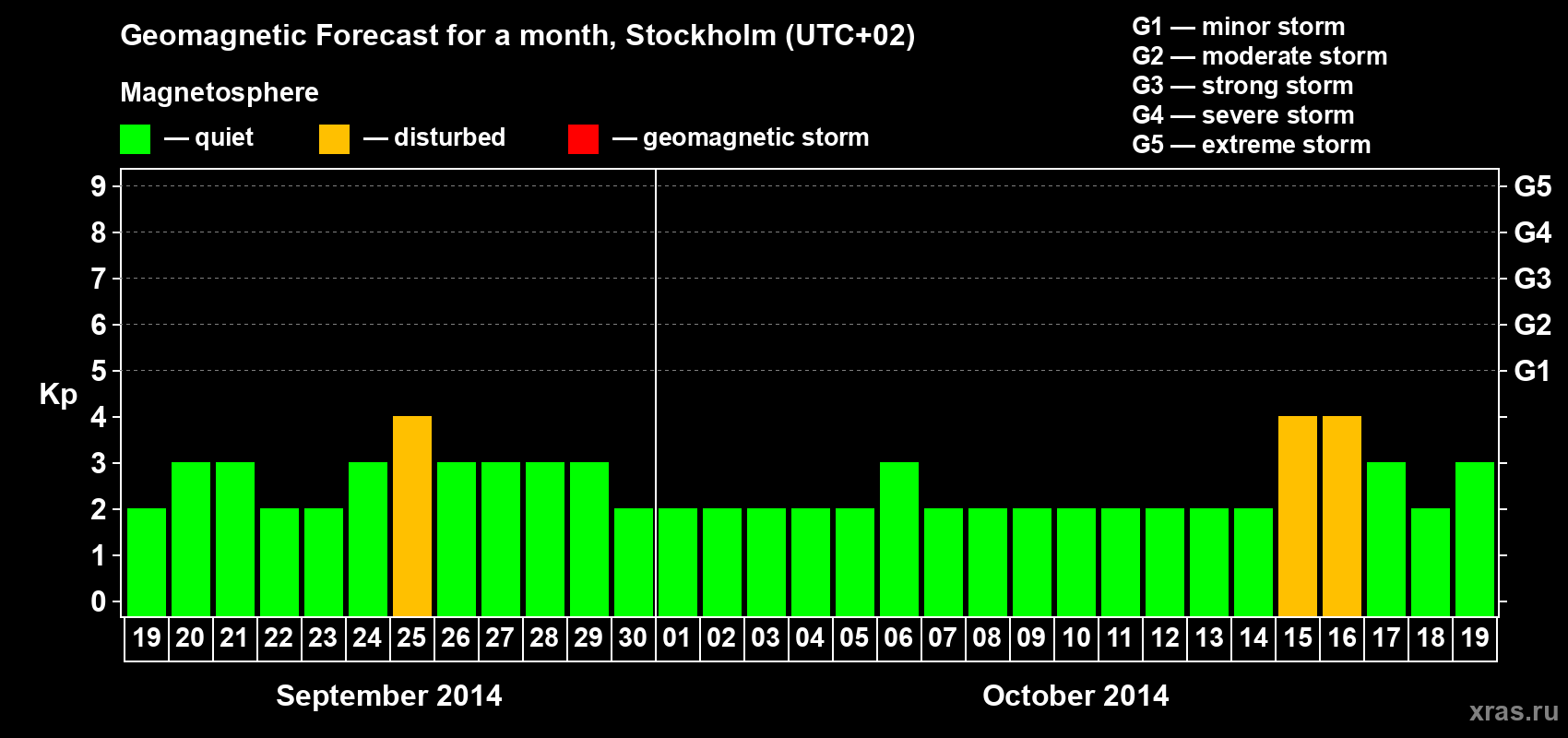 Geomagnetic storm forecast in Stockholm for Sep 19, 2014
