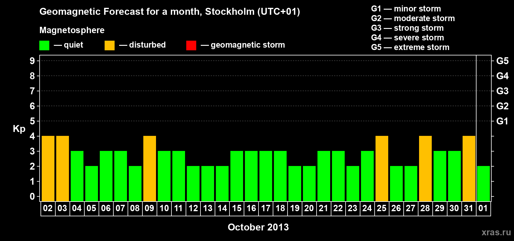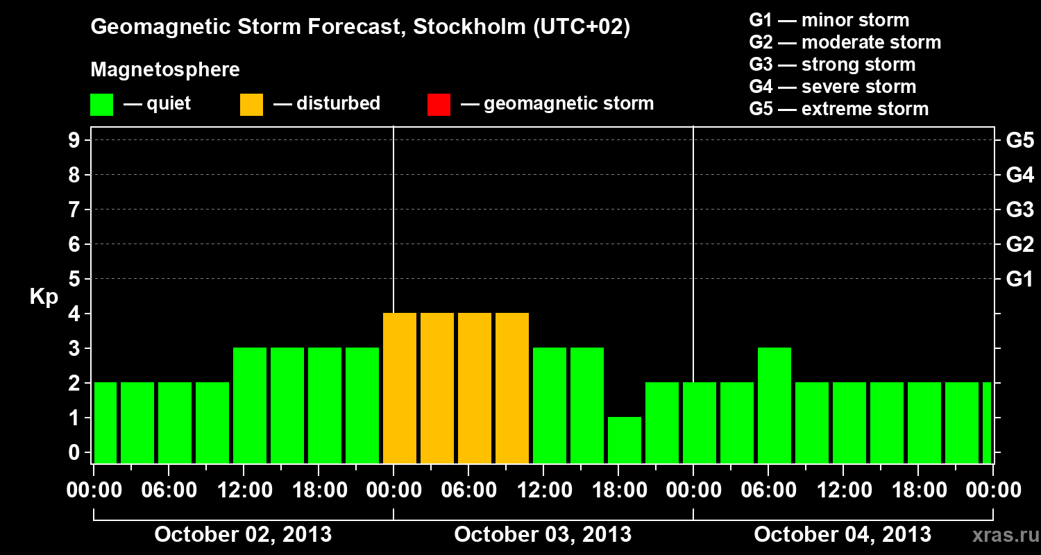 Geomagnetic storm forecast in Stockholm for Oct 02, 2013