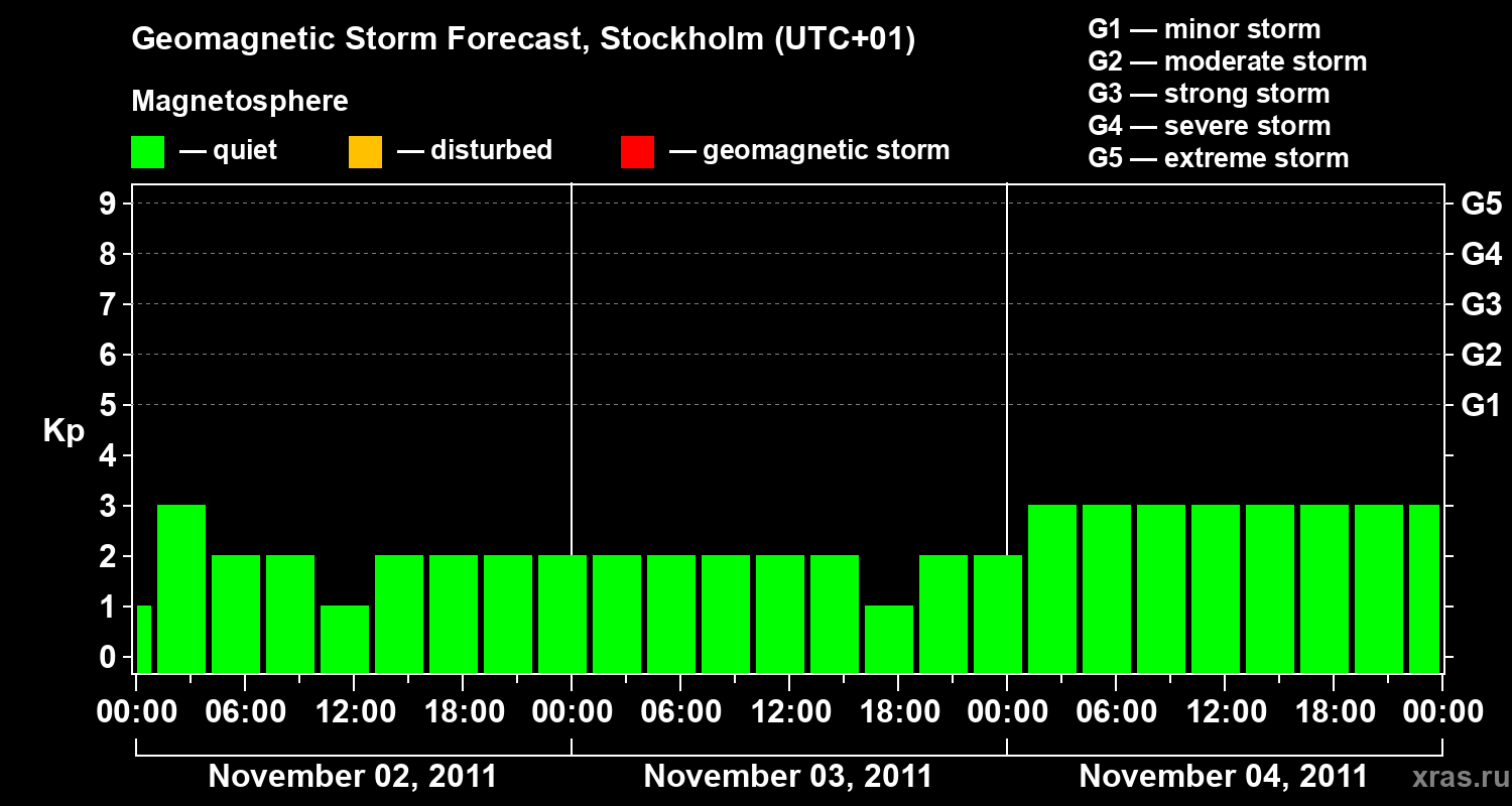 Geomagnetic storm forecast in Stockholm for Nov 02, 2011