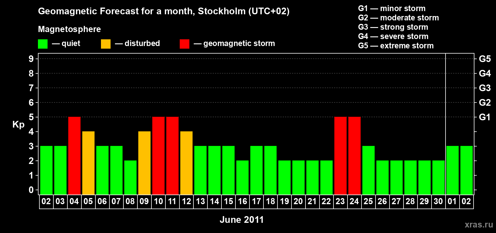 Geomagnetic storm forecast in Stockholm for Jun 02, 2011