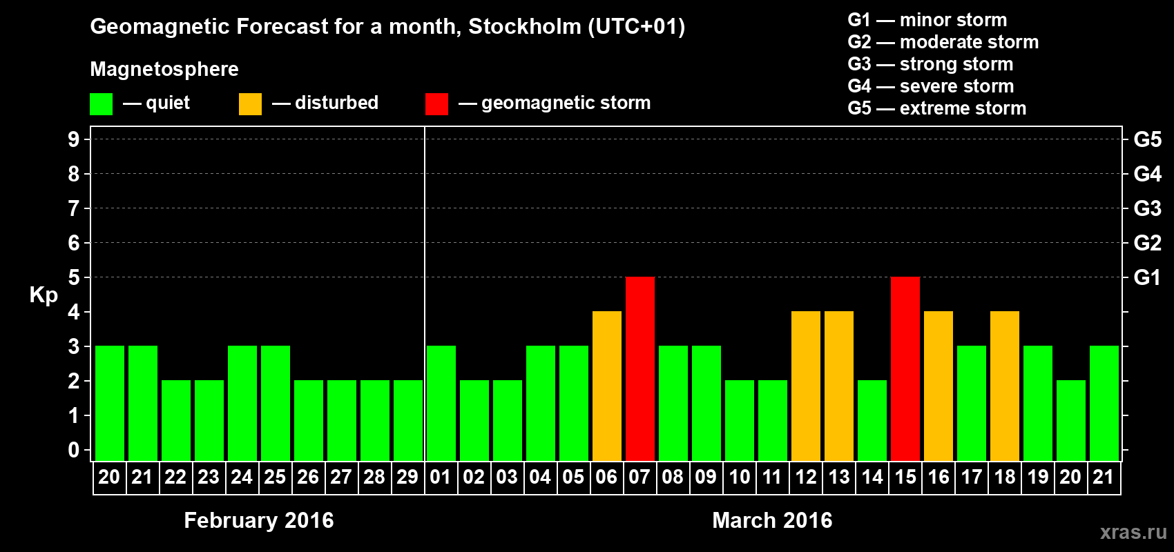 Geomagnetic activity forecast in Stockholm — Feb 20, 2016