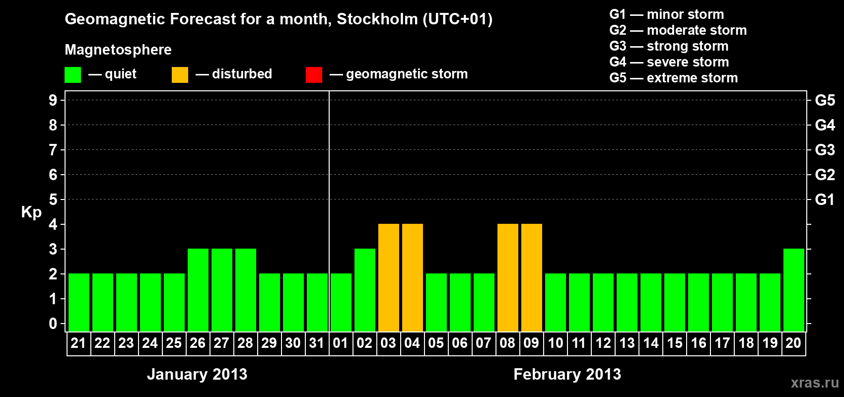 Geomagnetic storm forecast in Stockholm for Jan 21, 2013