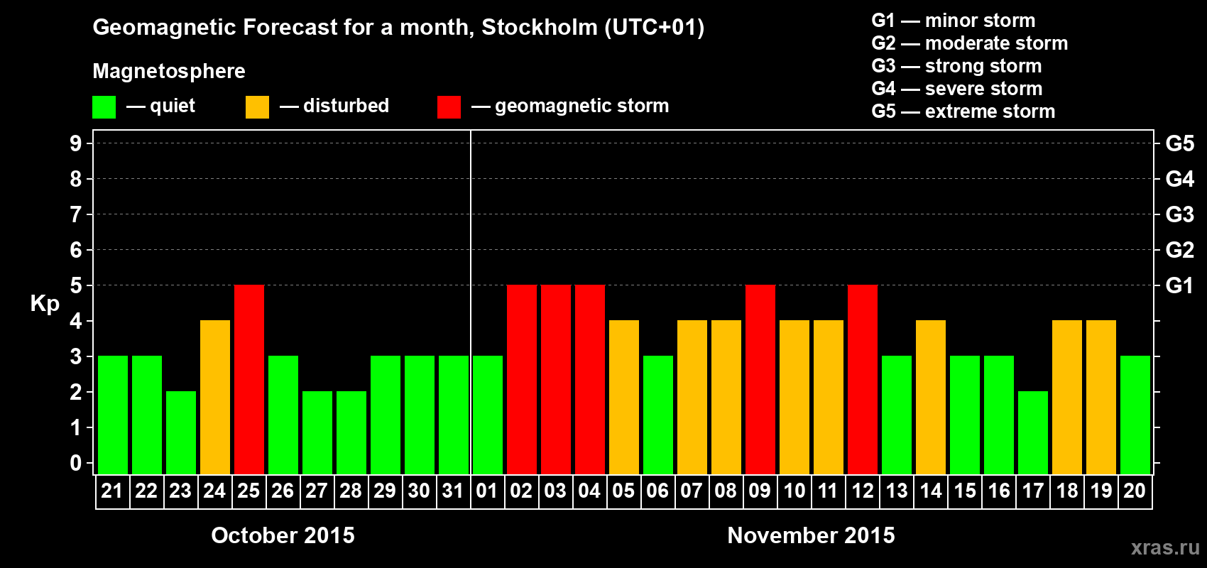 Geomagnetic storm forecast in Stockholm for Oct 21, 2015