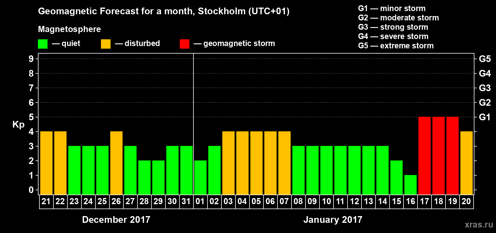 Geomagnetic storm forecast in Stockholm for Dec 21, 2016