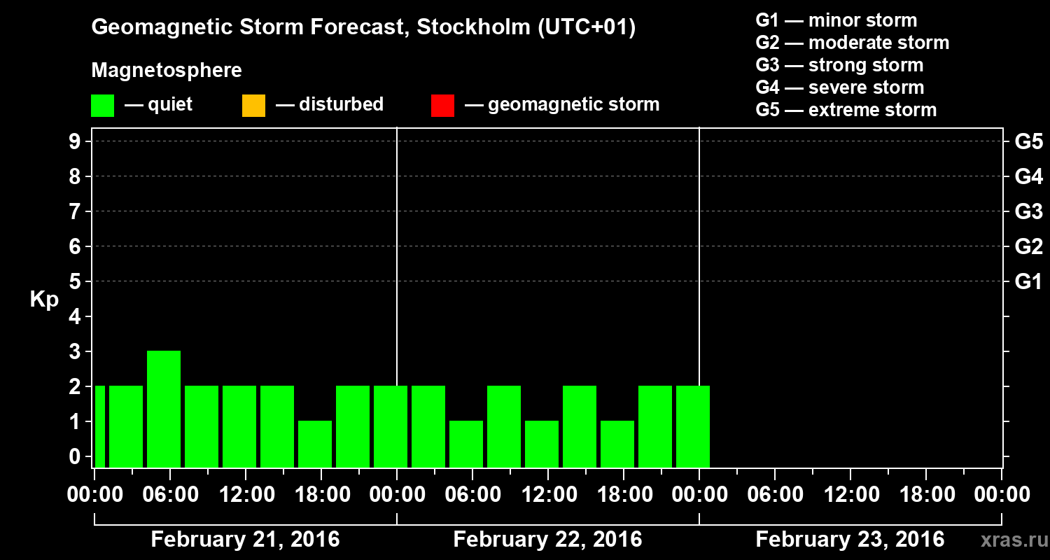 Geomagnetic storm forecast in Stockholm for Feb 21, 2016