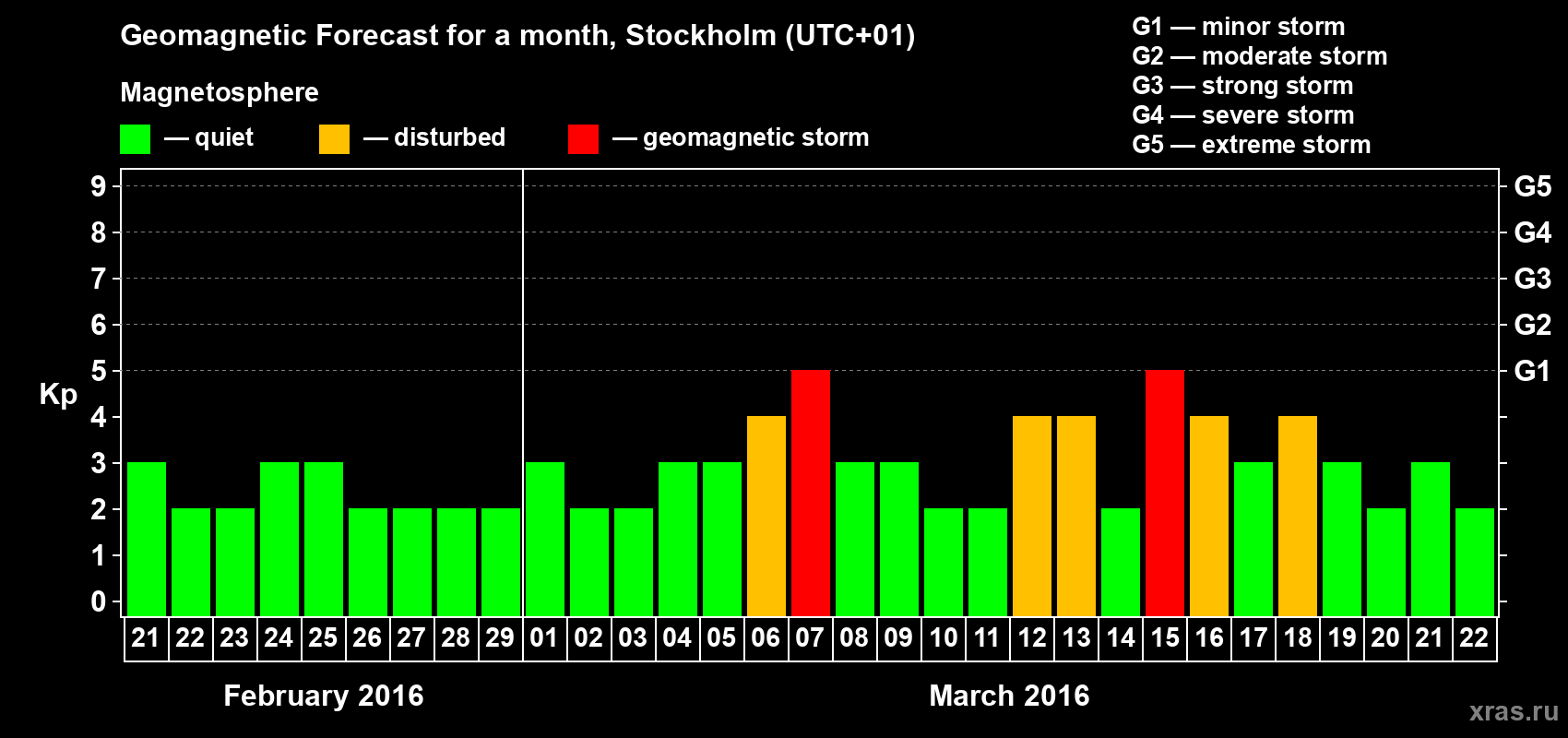Geomagnetic activity forecast in Stockholm — Feb 21, 2016