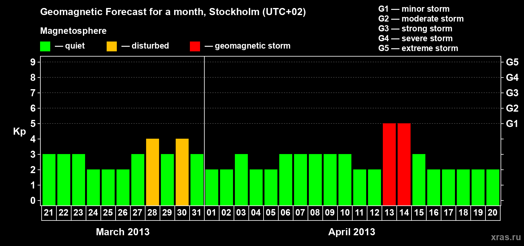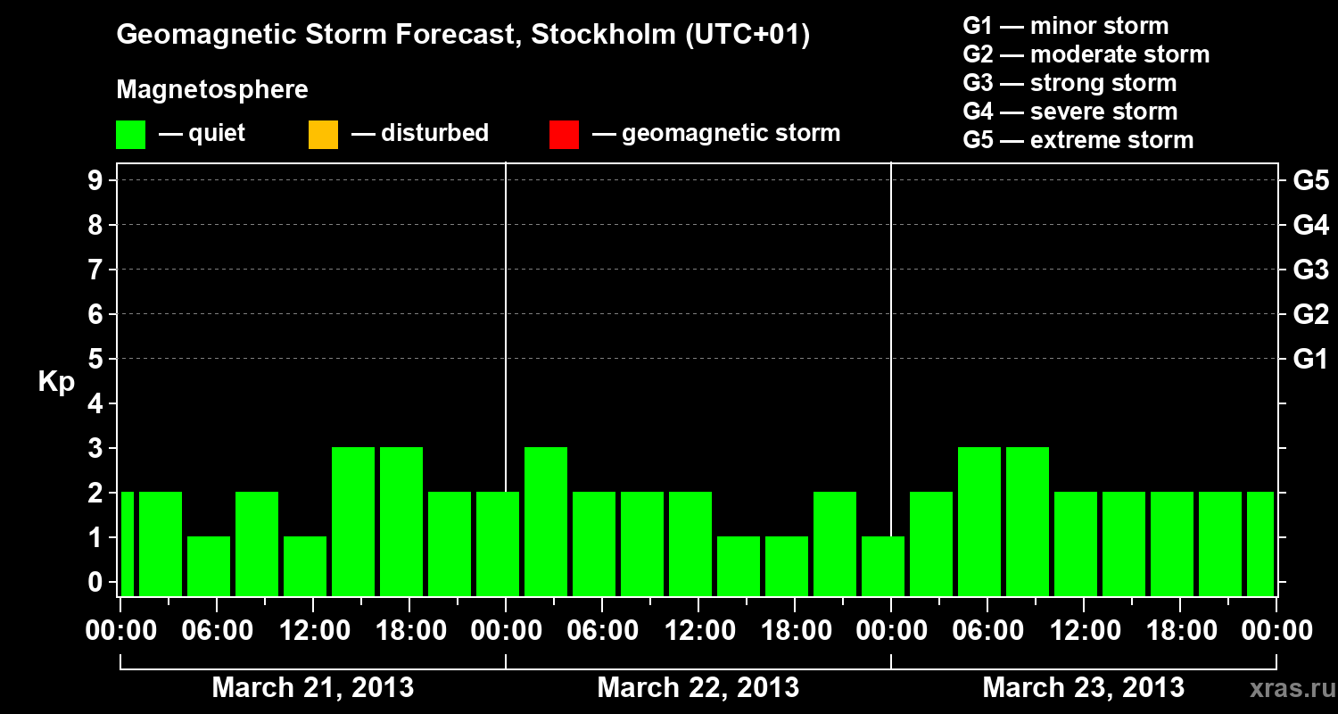 Geomagnetic storm forecast in Stockholm for Mar 21, 2013
