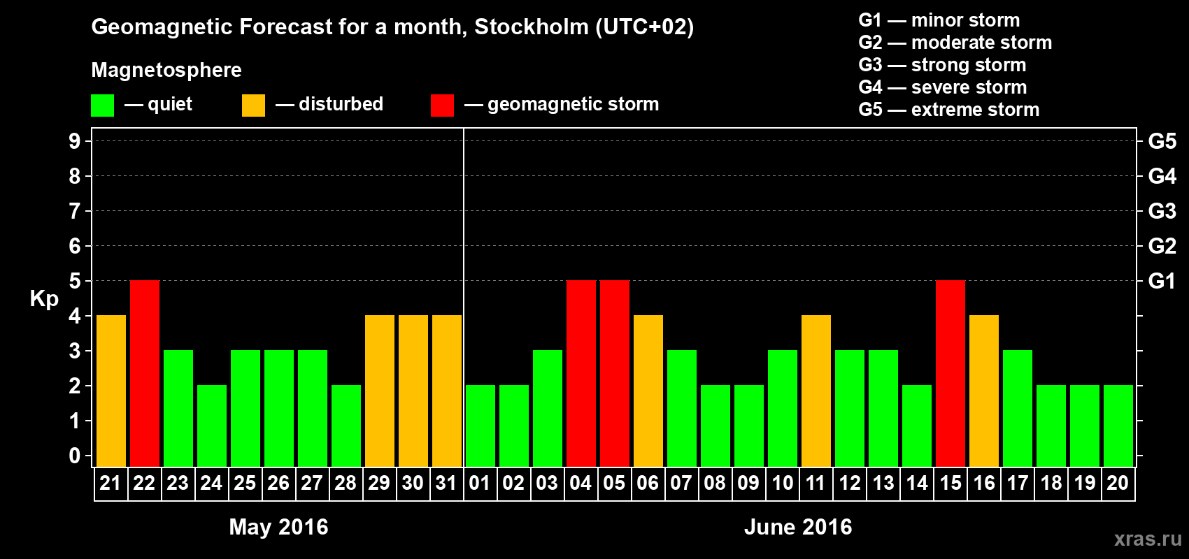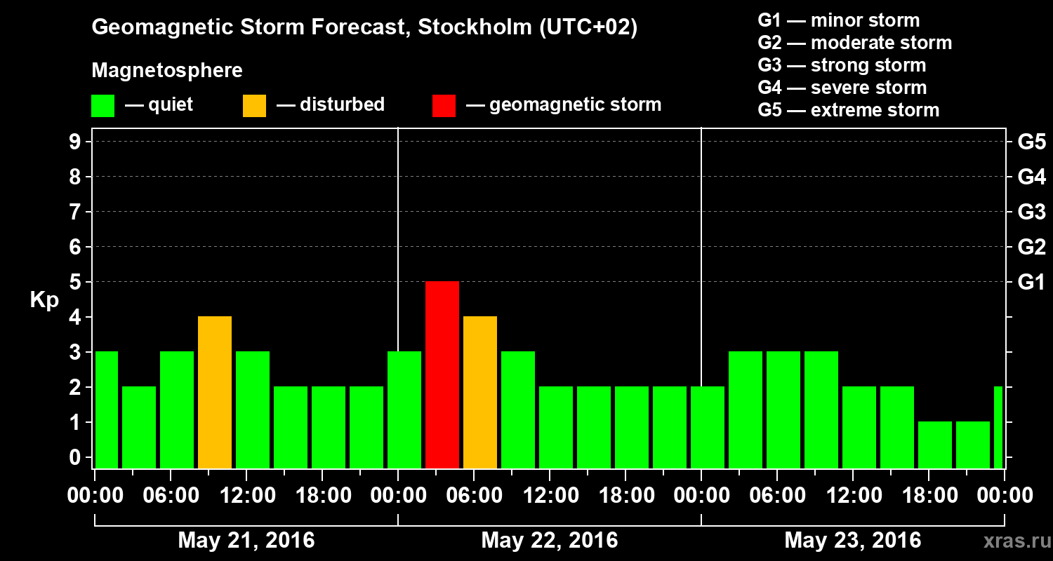 Geomagnetic storm forecast in Stockholm for May 21, 2016