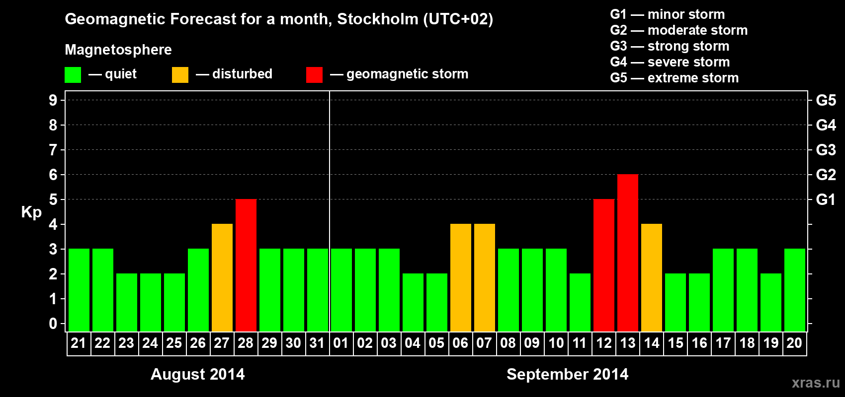 Geomagnetic storm forecast in Stockholm for Aug 21, 2014