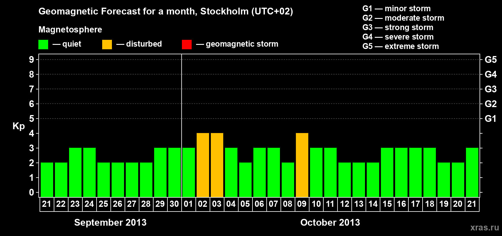 Geomagnetic storm forecast in Stockholm for Sep 21, 2013