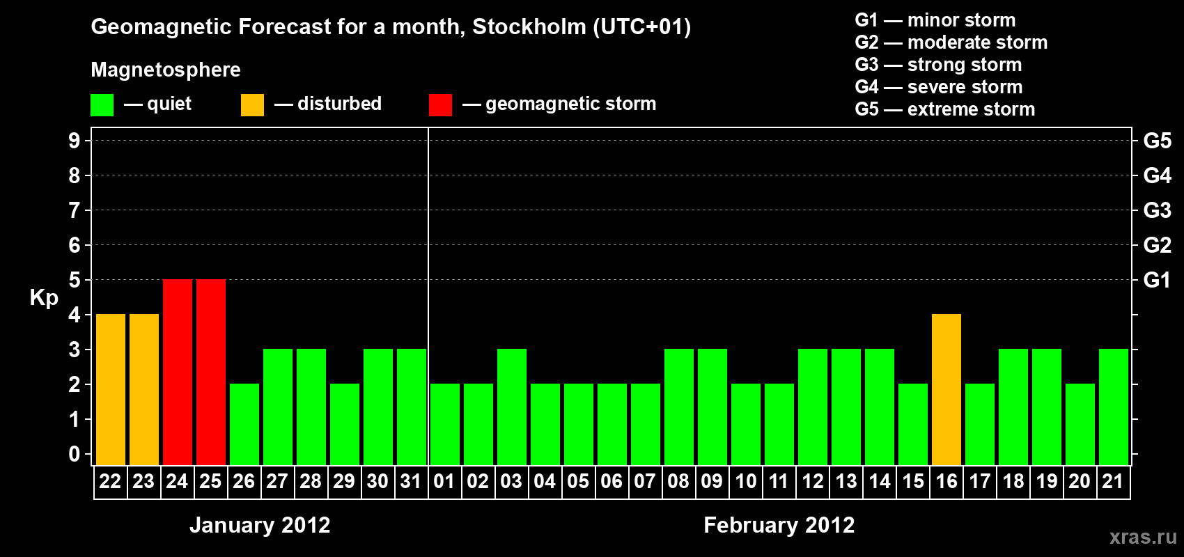 Geomagnetic storm forecast in Stockholm for Jan 22, 2012