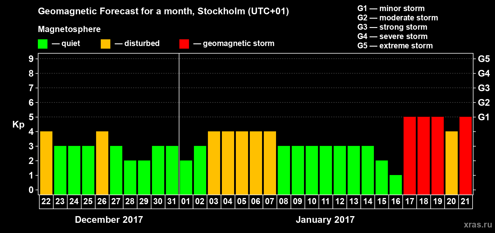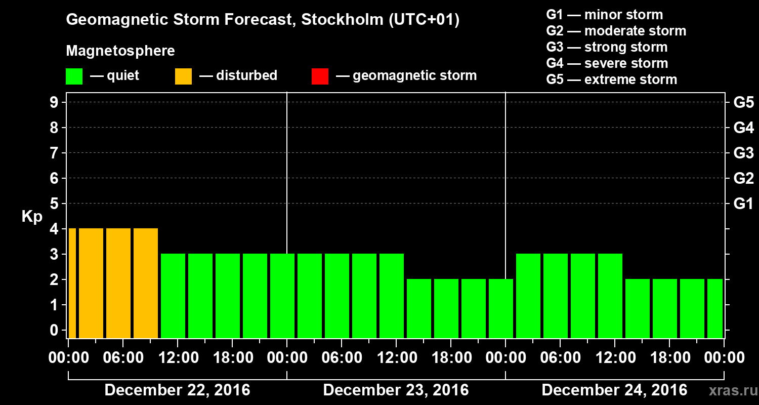 Geomagnetic storm forecast in Stockholm for Dec 22, 2016