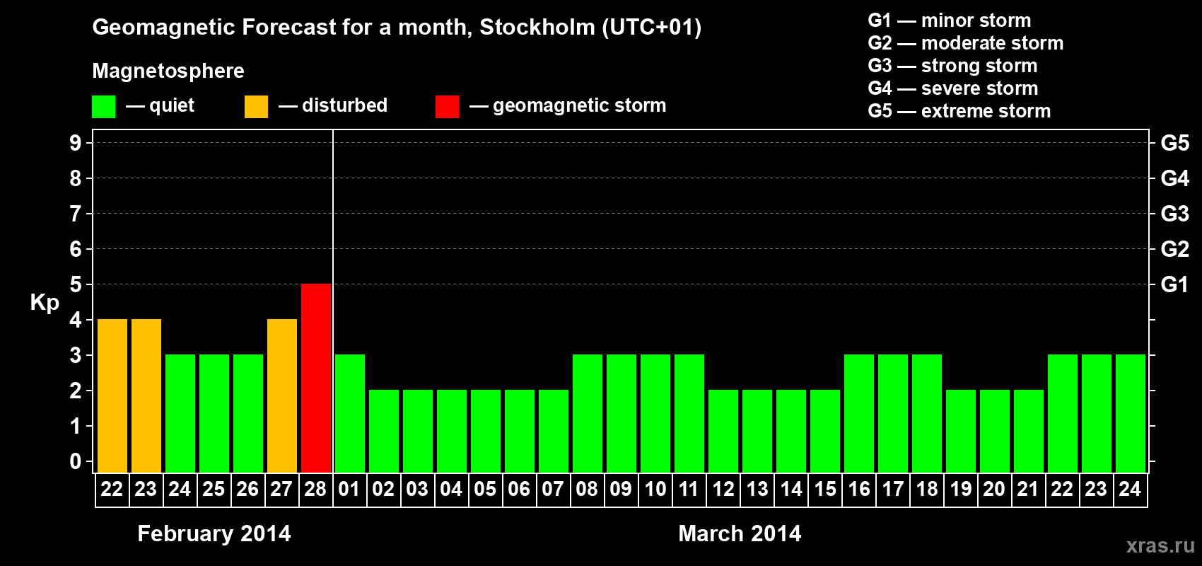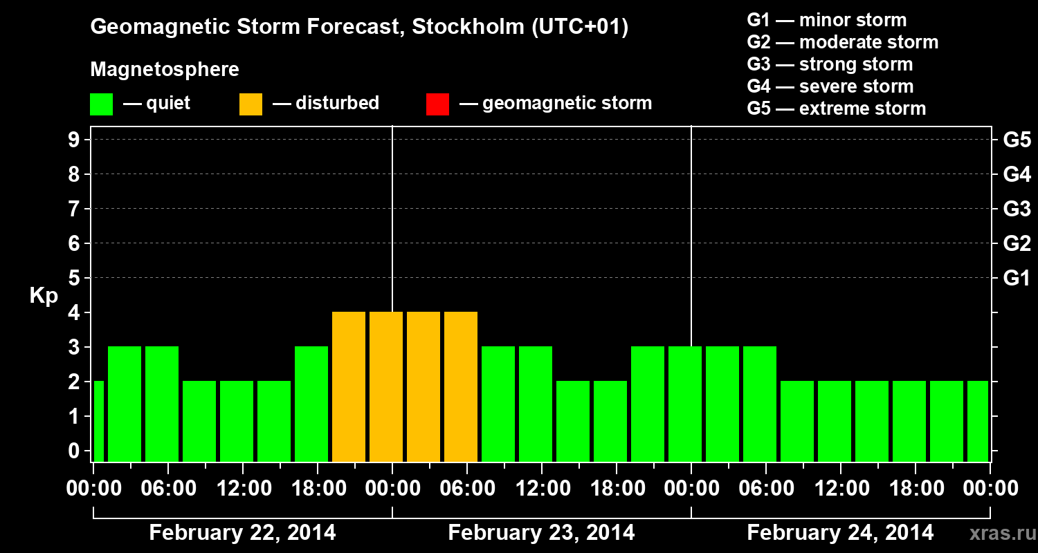 Geomagnetic storm forecast in Stockholm for Feb 22, 2014