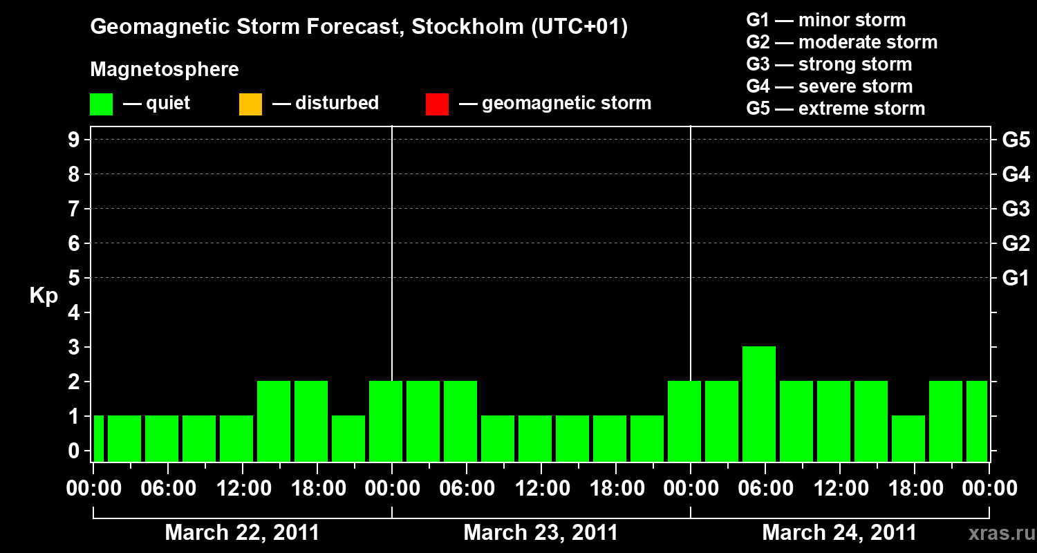 Geomagnetic storm forecast in Stockholm for Mar 22, 2011
