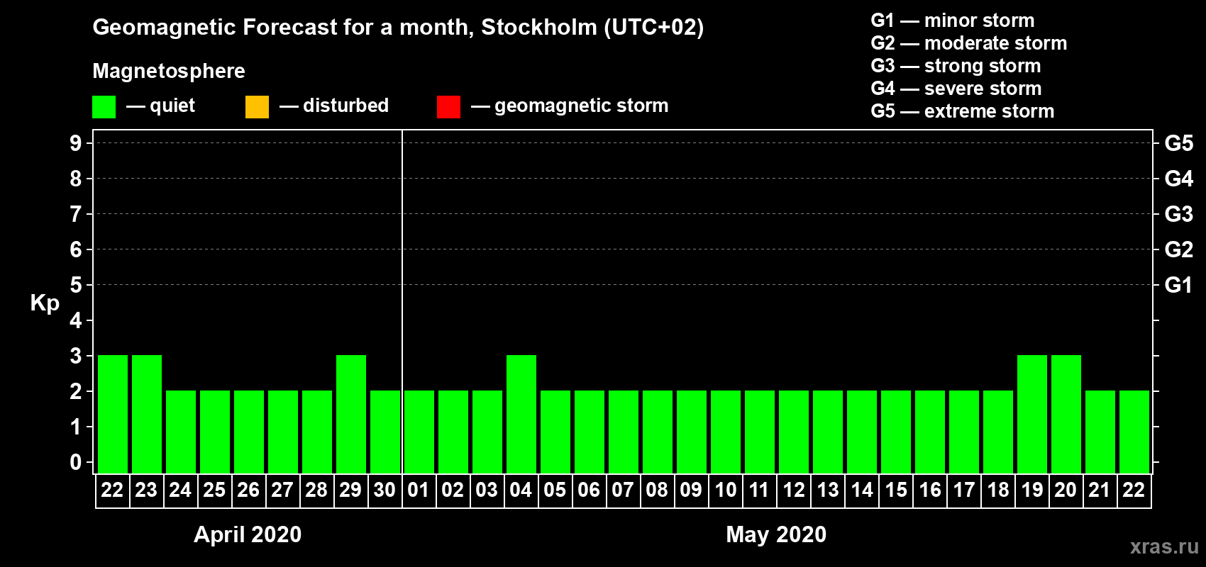 Geomagnetic storm forecast in Stockholm for Apr 22, 2020