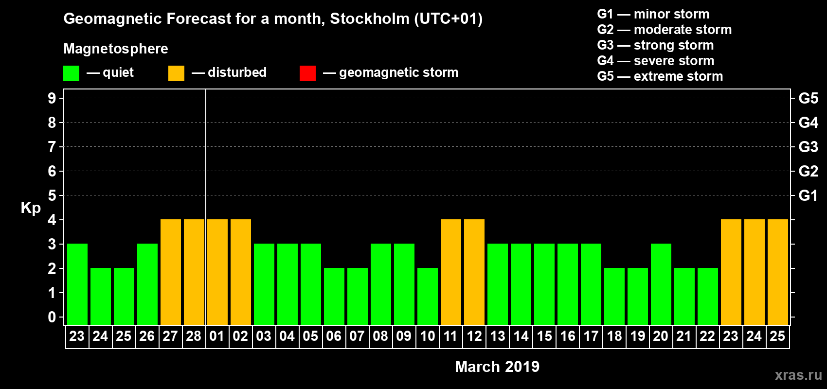 Geomagnetic activity forecast in Stockholm — Feb 23, 2019