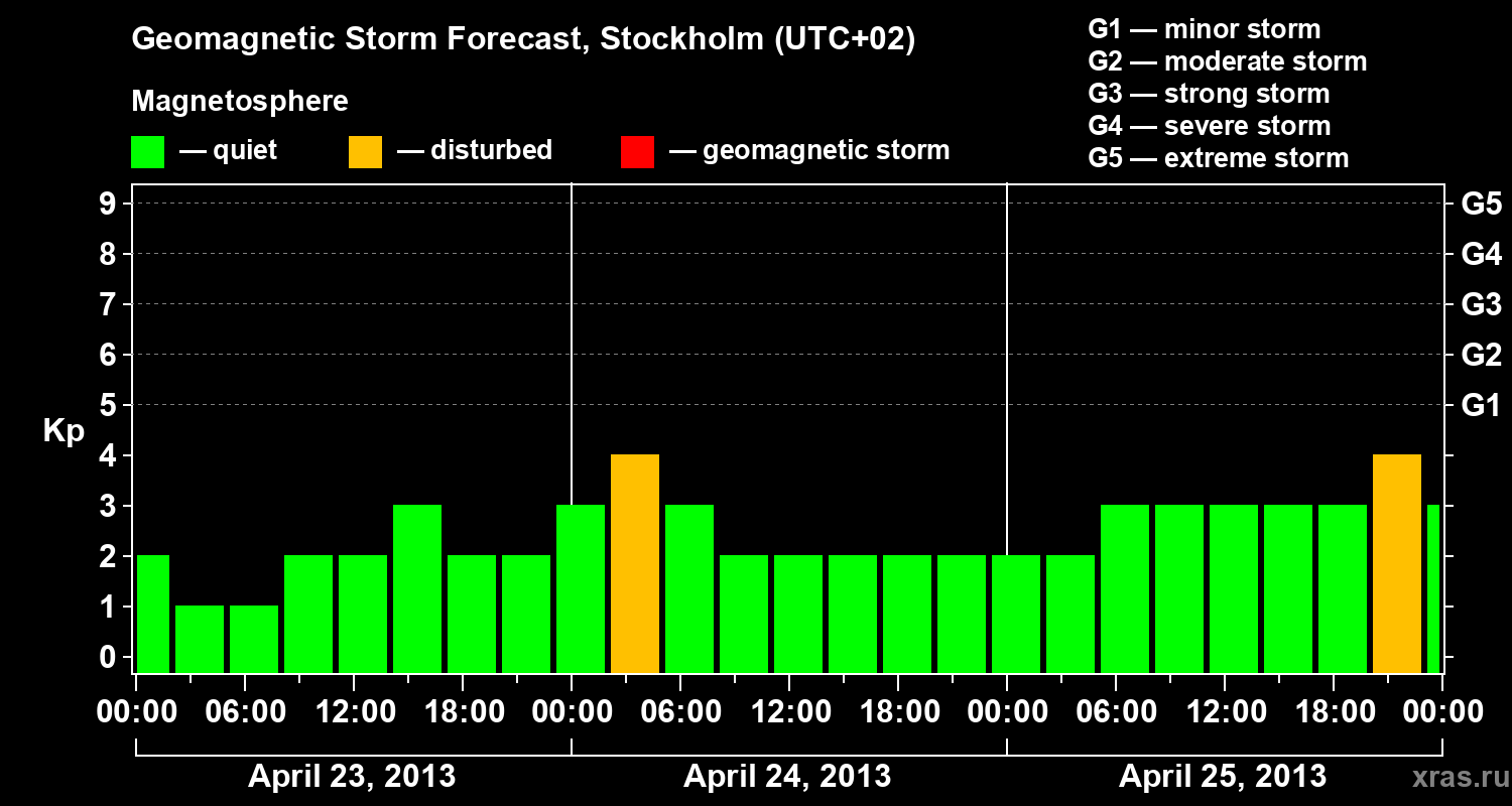 Geomagnetic storm forecast in Stockholm for Apr 23, 2013