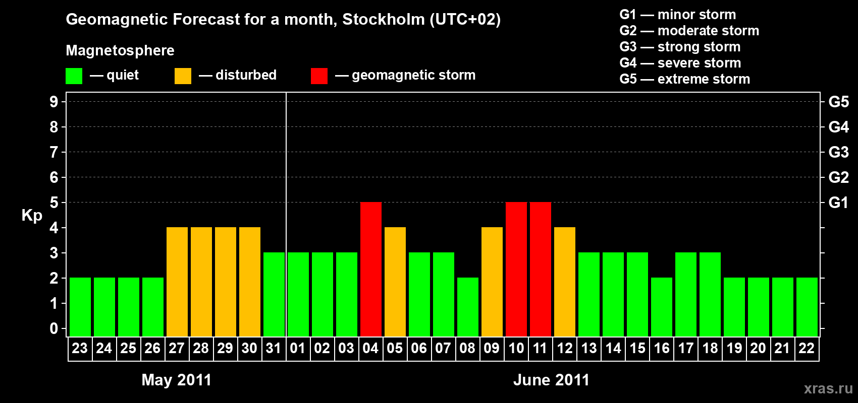 Geomagnetic storm forecast in Stockholm for May 23, 2011