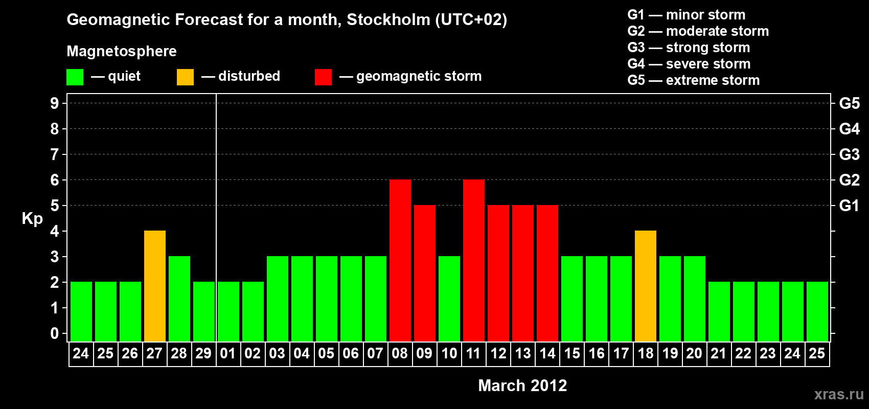 Geomagnetic storm forecast in Stockholm for Feb 24, 2012