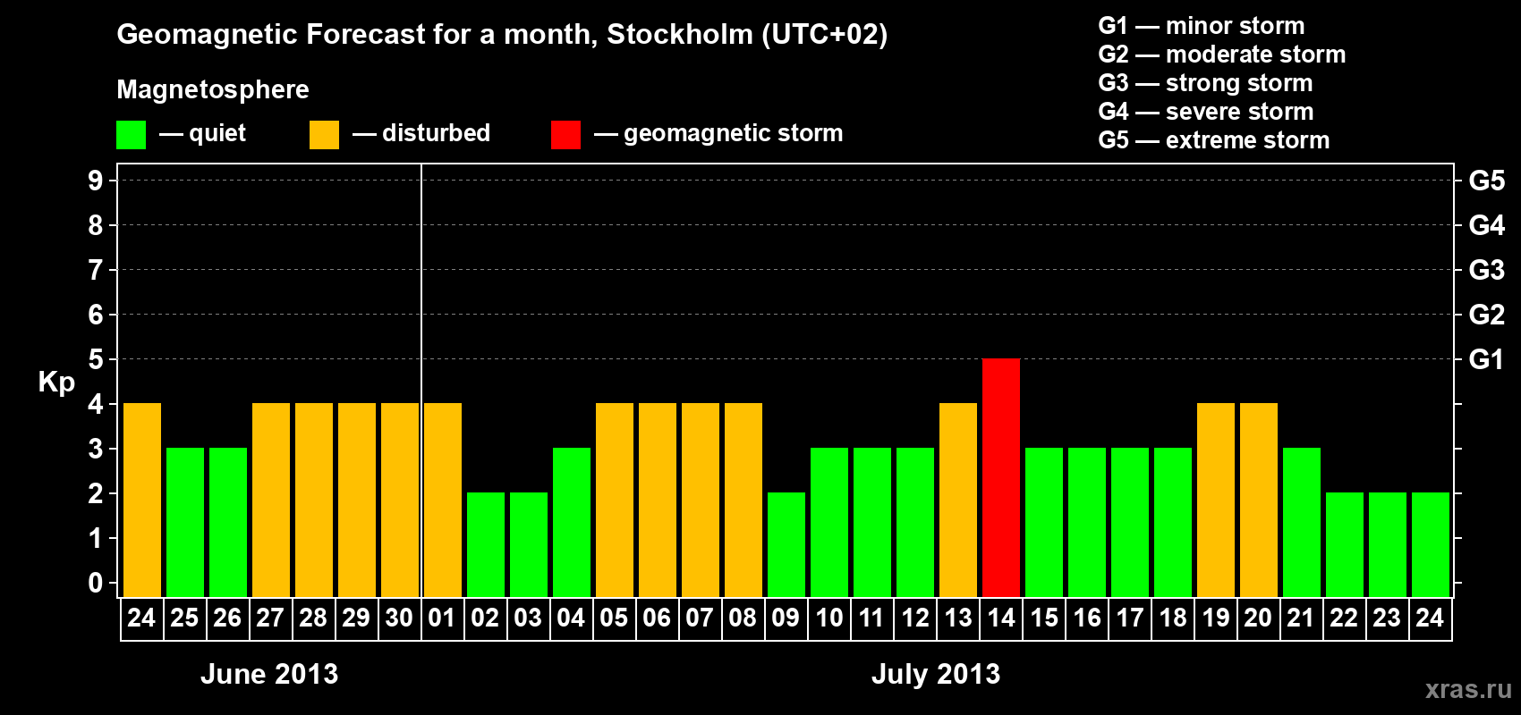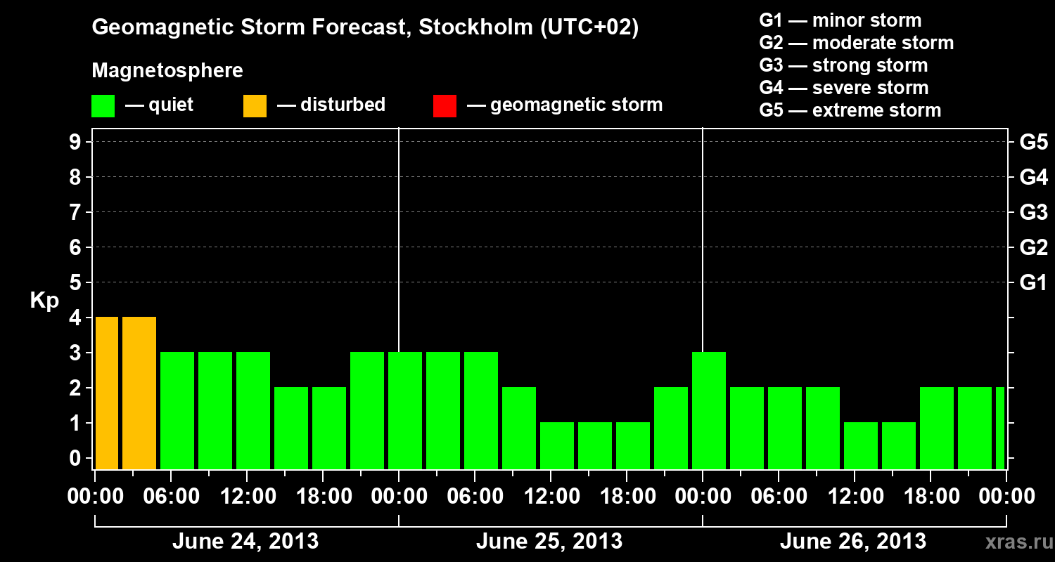 Geomagnetic storm forecast in Stockholm for Jun 24, 2013