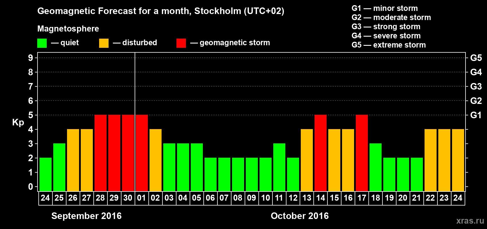 Geomagnetic storm forecast in Stockholm for Sep 24, 2016