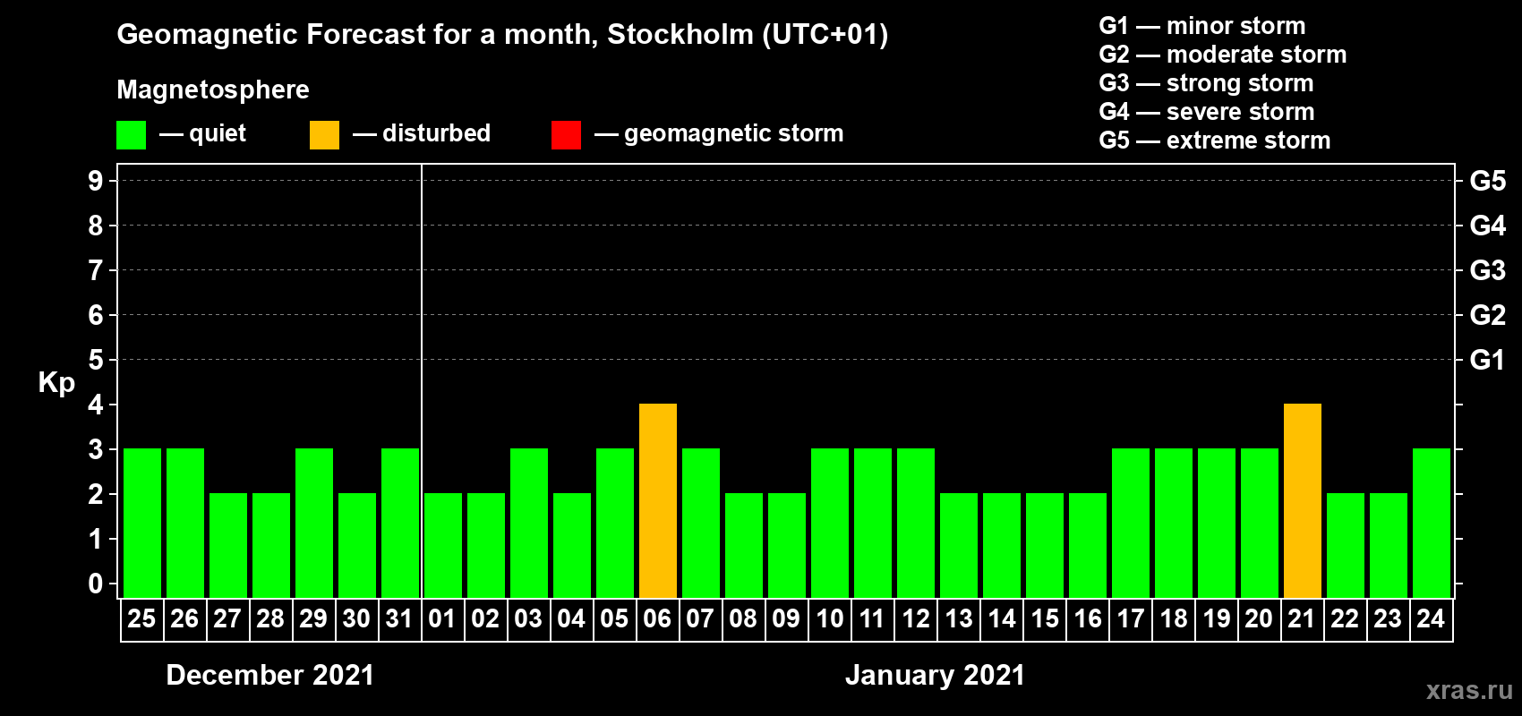 Geomagnetic storm forecast in Stockholm for Dec 25, 2020