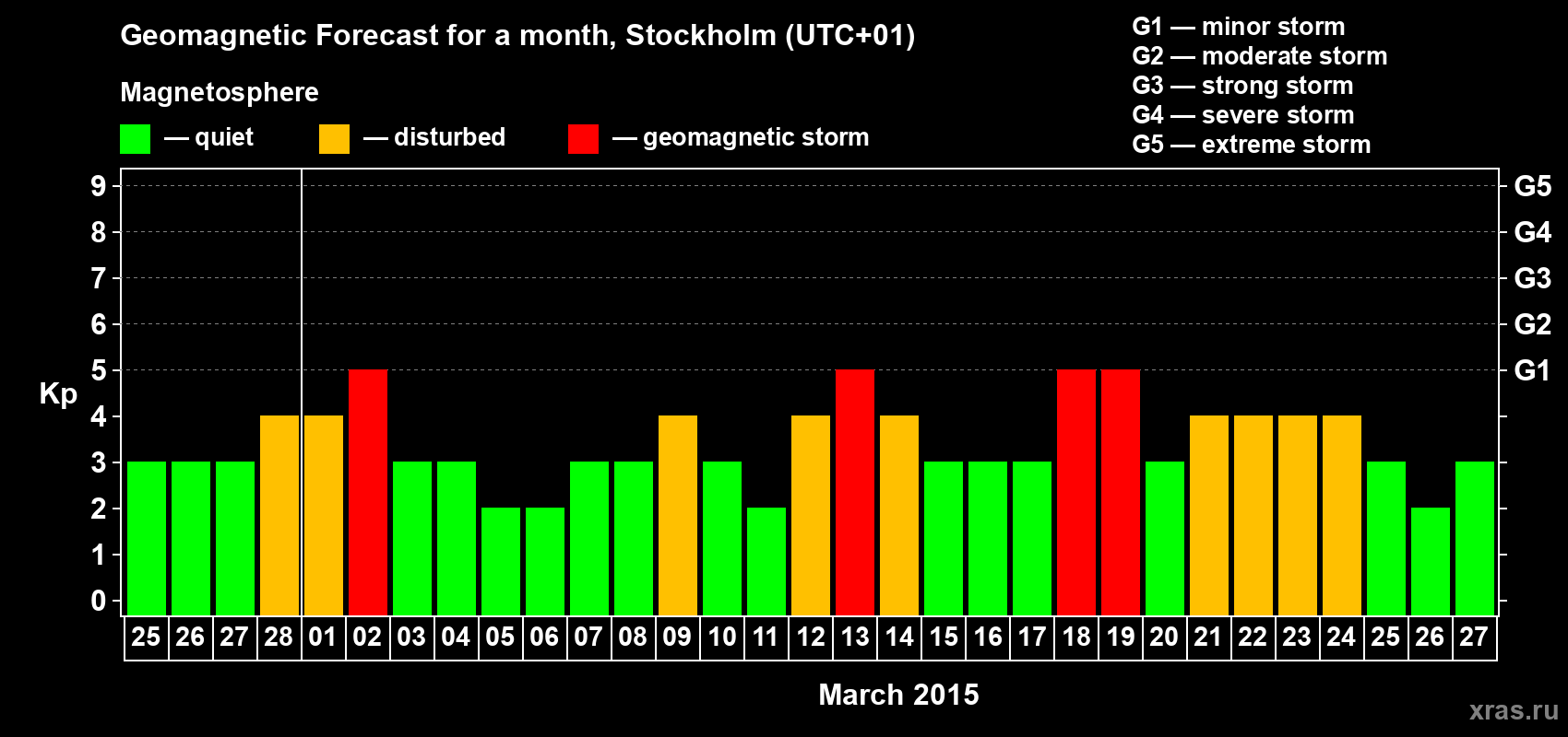 Geomagnetic storm forecast in Stockholm for Feb 25, 2015