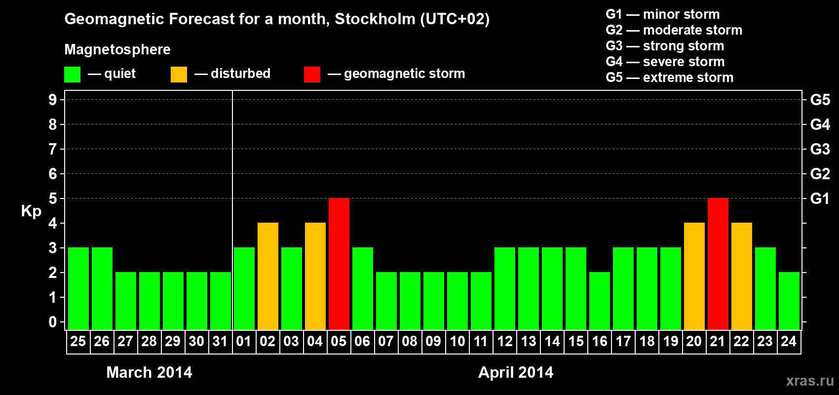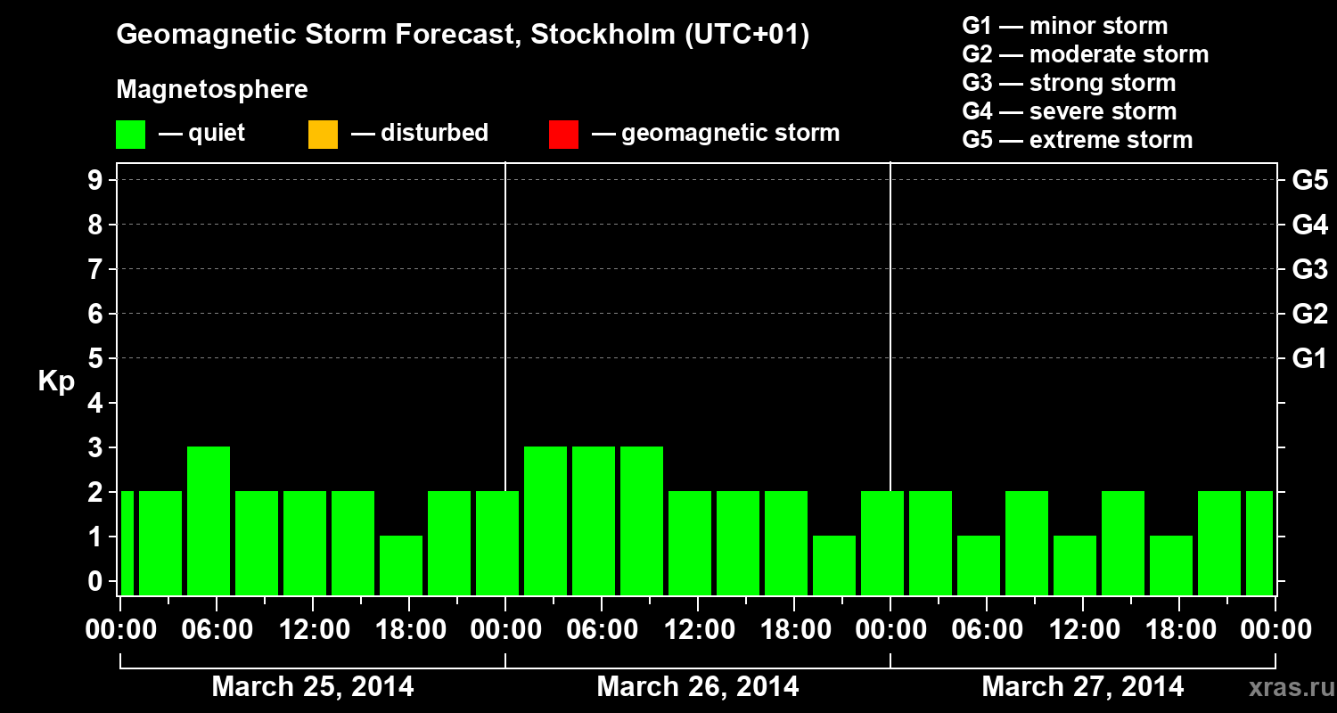 Geomagnetic storm forecast in Stockholm for Mar 25, 2014