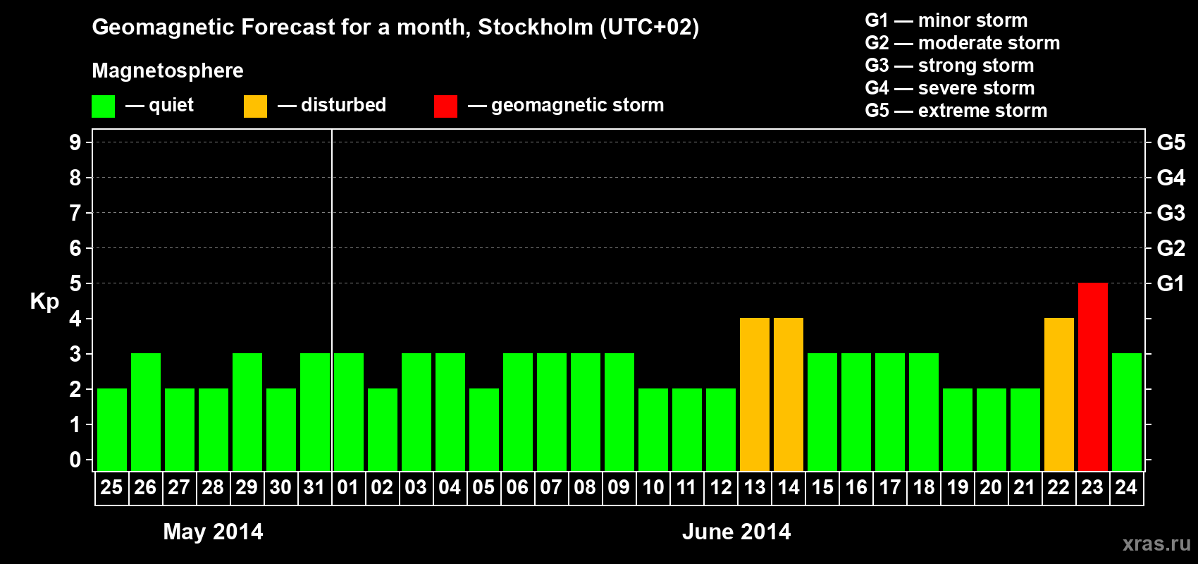 Geomagnetic storm forecast in Stockholm for May 25, 2014