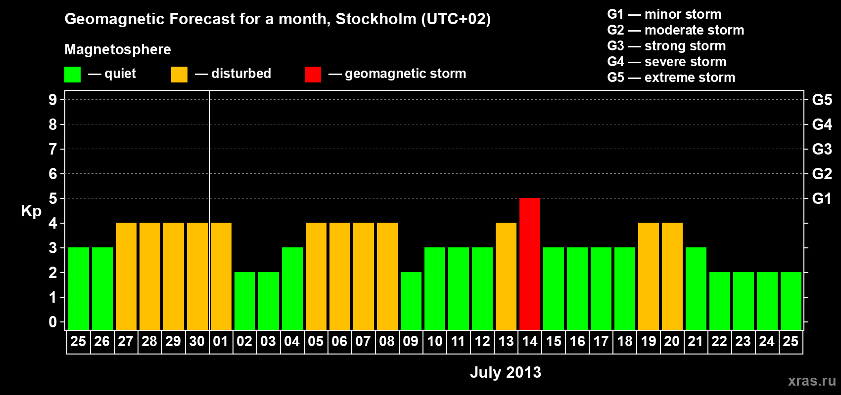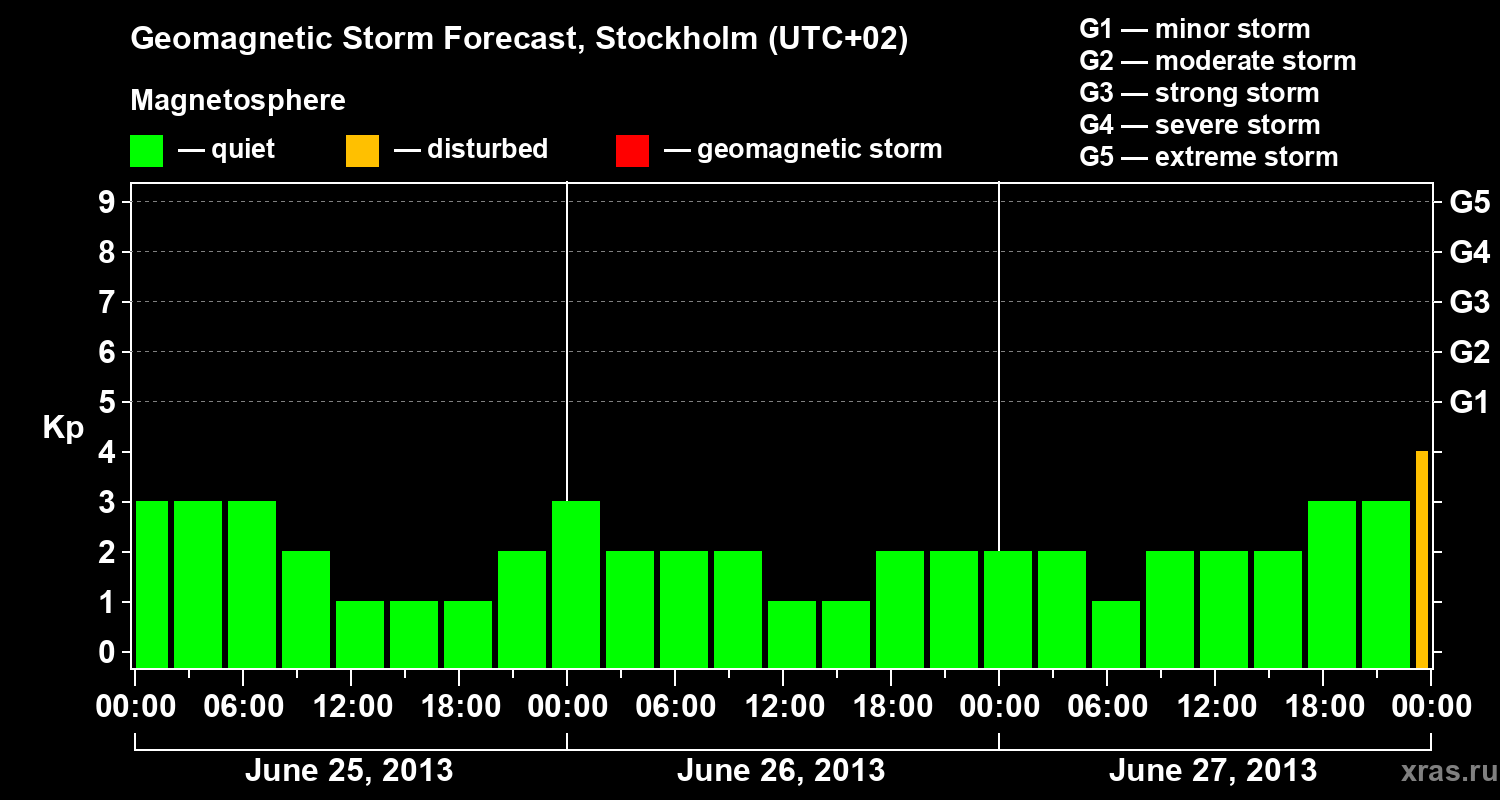 Geomagnetic storm forecast in Stockholm for Jun 25, 2013