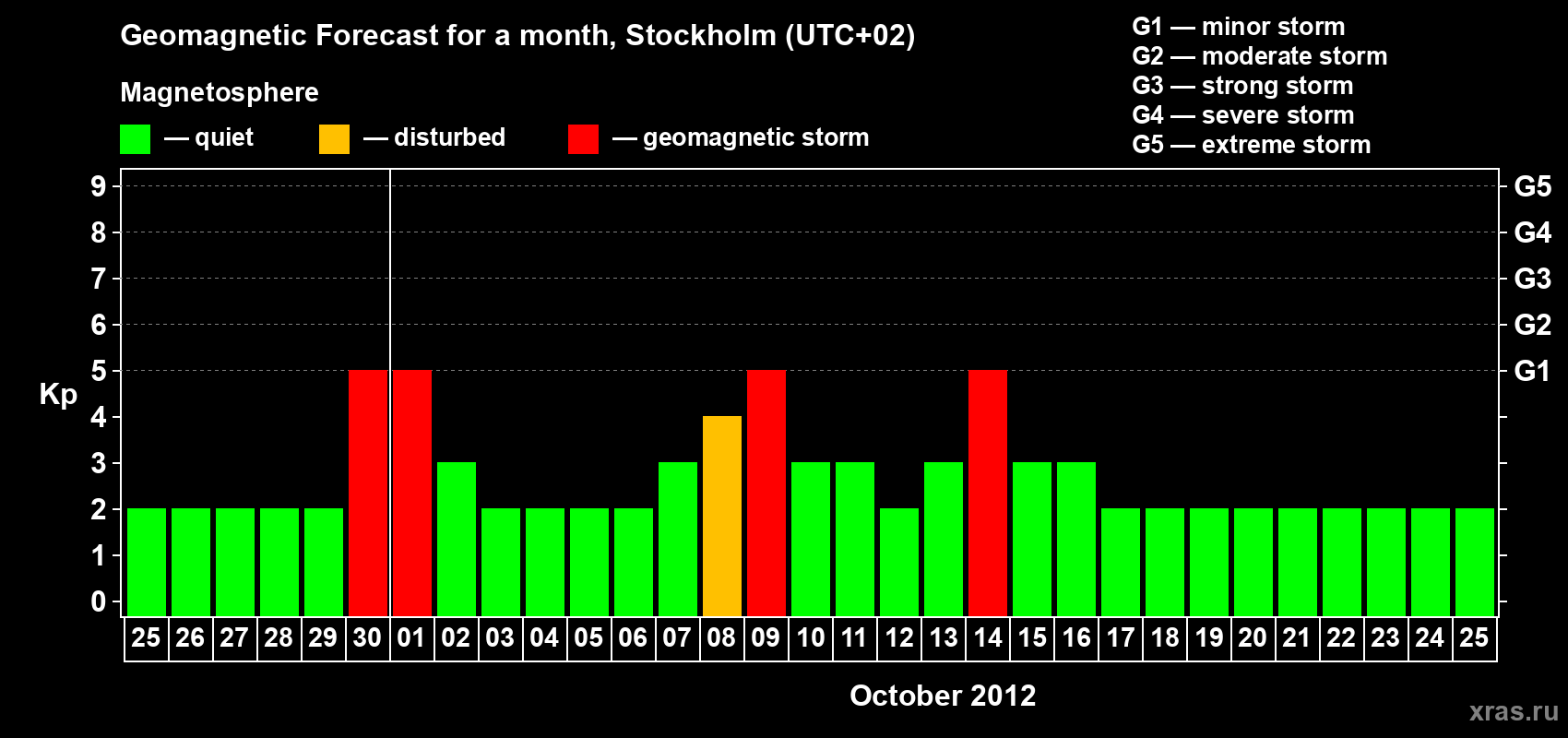 Geomagnetic storm forecast in Stockholm for Sep 25, 2012