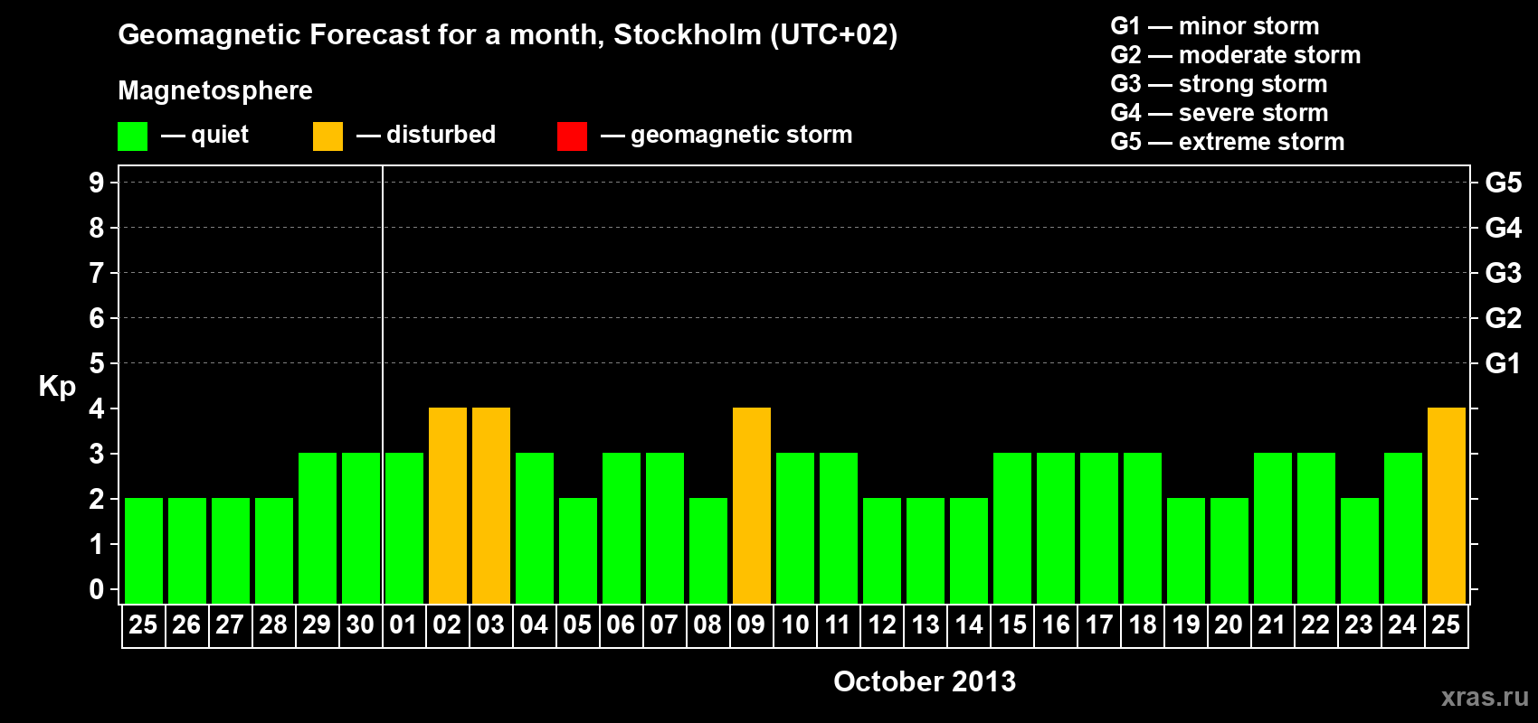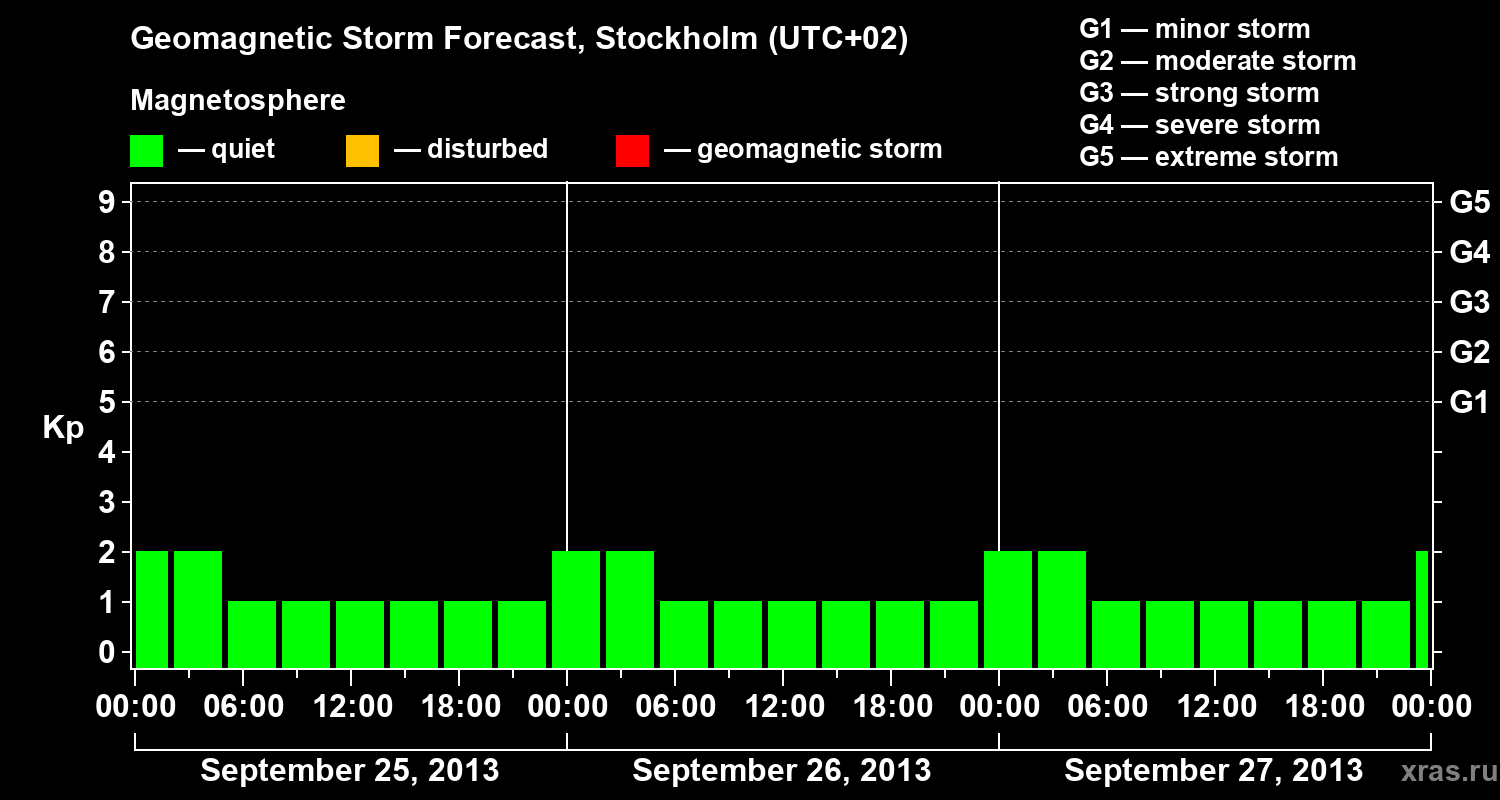 Geomagnetic storm forecast in Stockholm for Sep 25, 2013